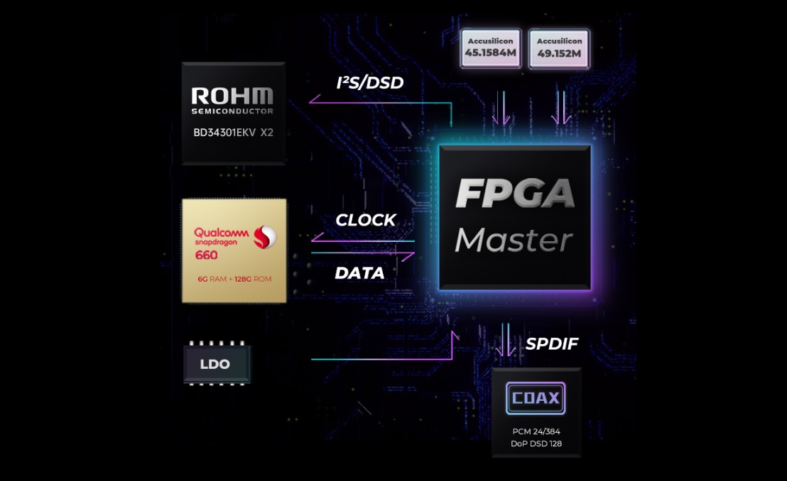 iBasso DX320 features their self-developed FPGA Master technology that requests signals directly from the SoC. It is incorporated by two independent NDK Femtosecond crystal oscillators in maintaining a stable signal with low jitter and high definition.
