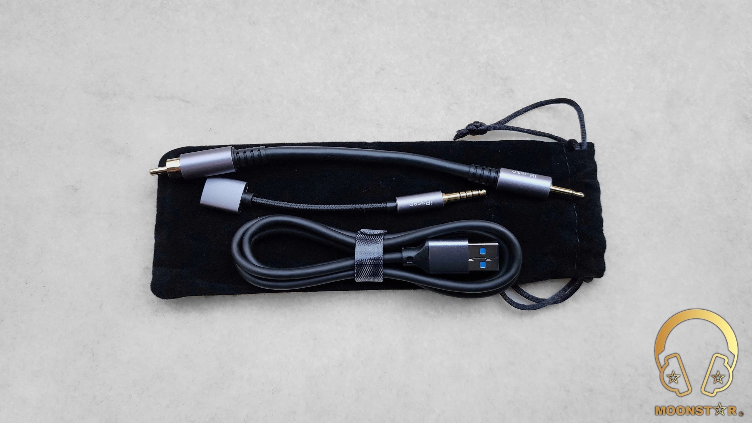 Included in the package are protective films, burn-in and coaxial (SPDIF) cables, two sets of protective caps for the Type-C ports, and a 12V external power adapter, enhancing the overall functionality of the product.