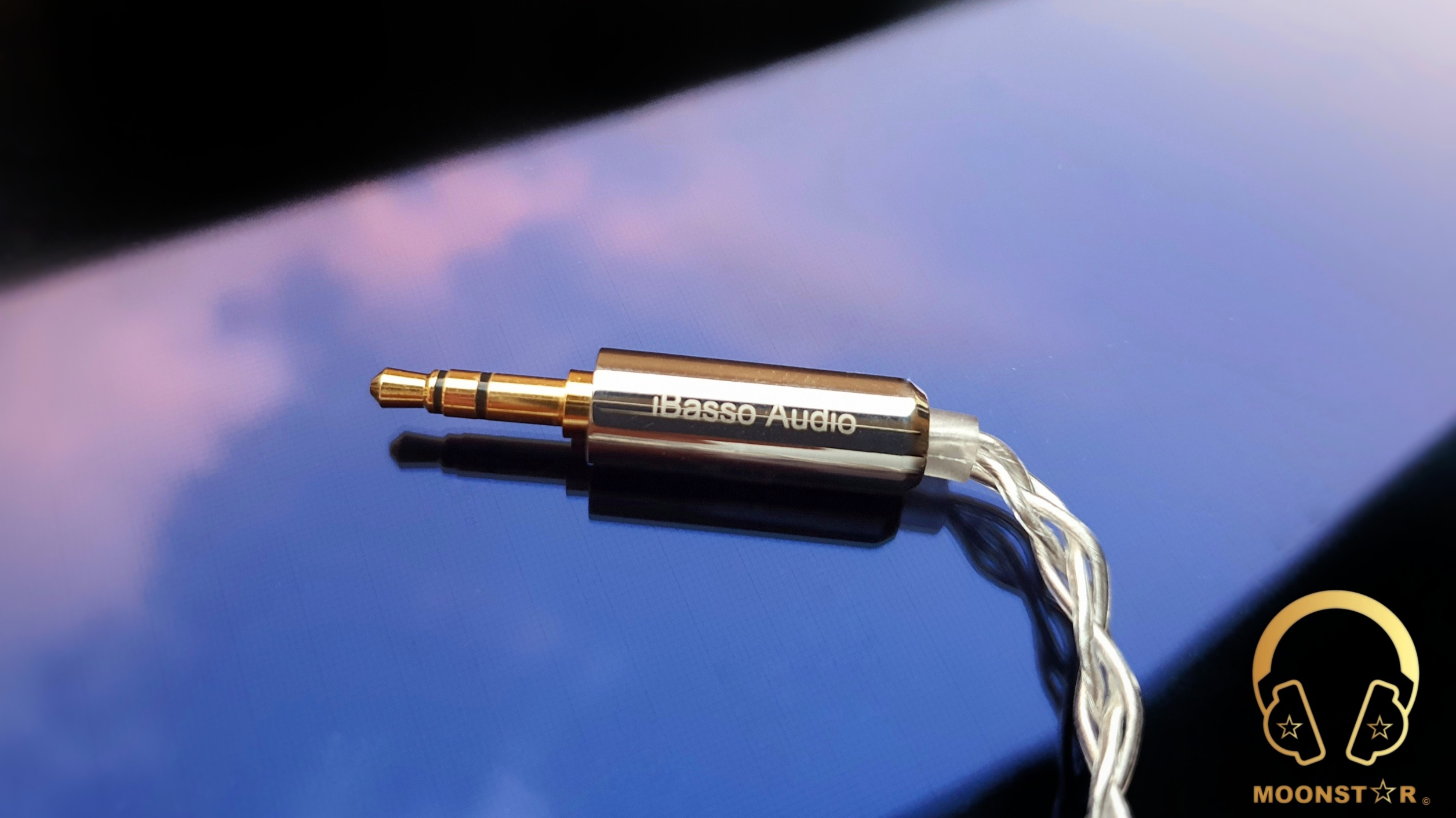 The 3.5mm gold plated TRS headphone plug has a straight profiled metal housing in silver that has the iBasso Audio branding and on the top and a strain relief at the rear side for extra durability.