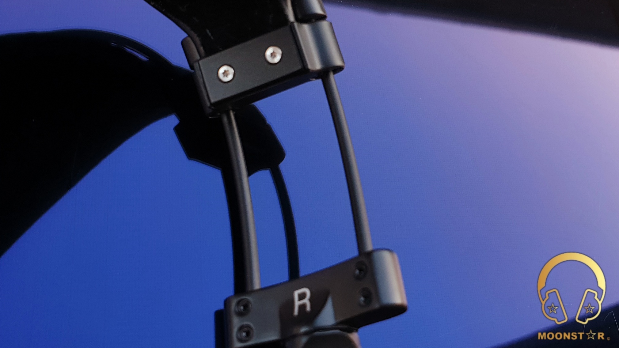 The headband hangers are made of metal in black color and do have L (Left) and R (Right) markings in white color at the inner surface of the holders.