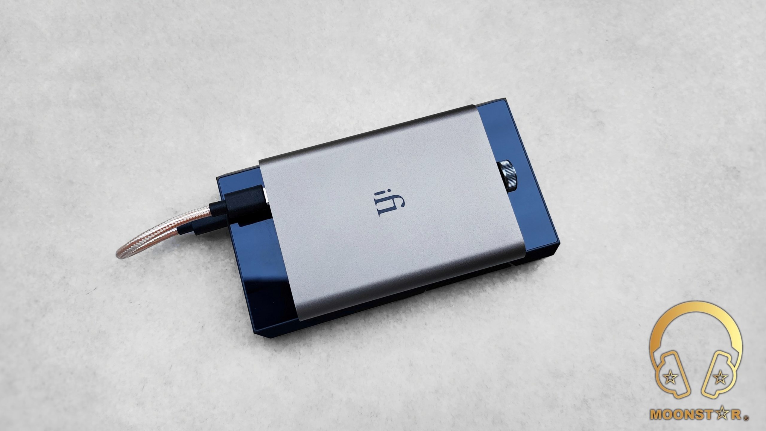 The top of the device has a minimalistic appearance that displays the “iFi” brand logo right at the center.