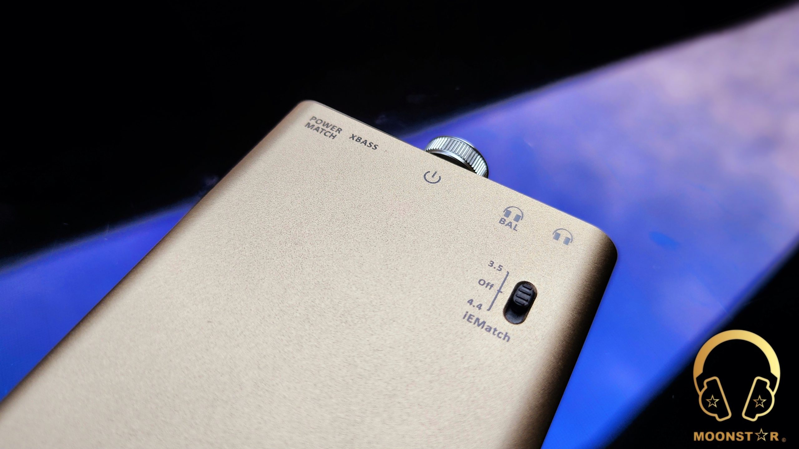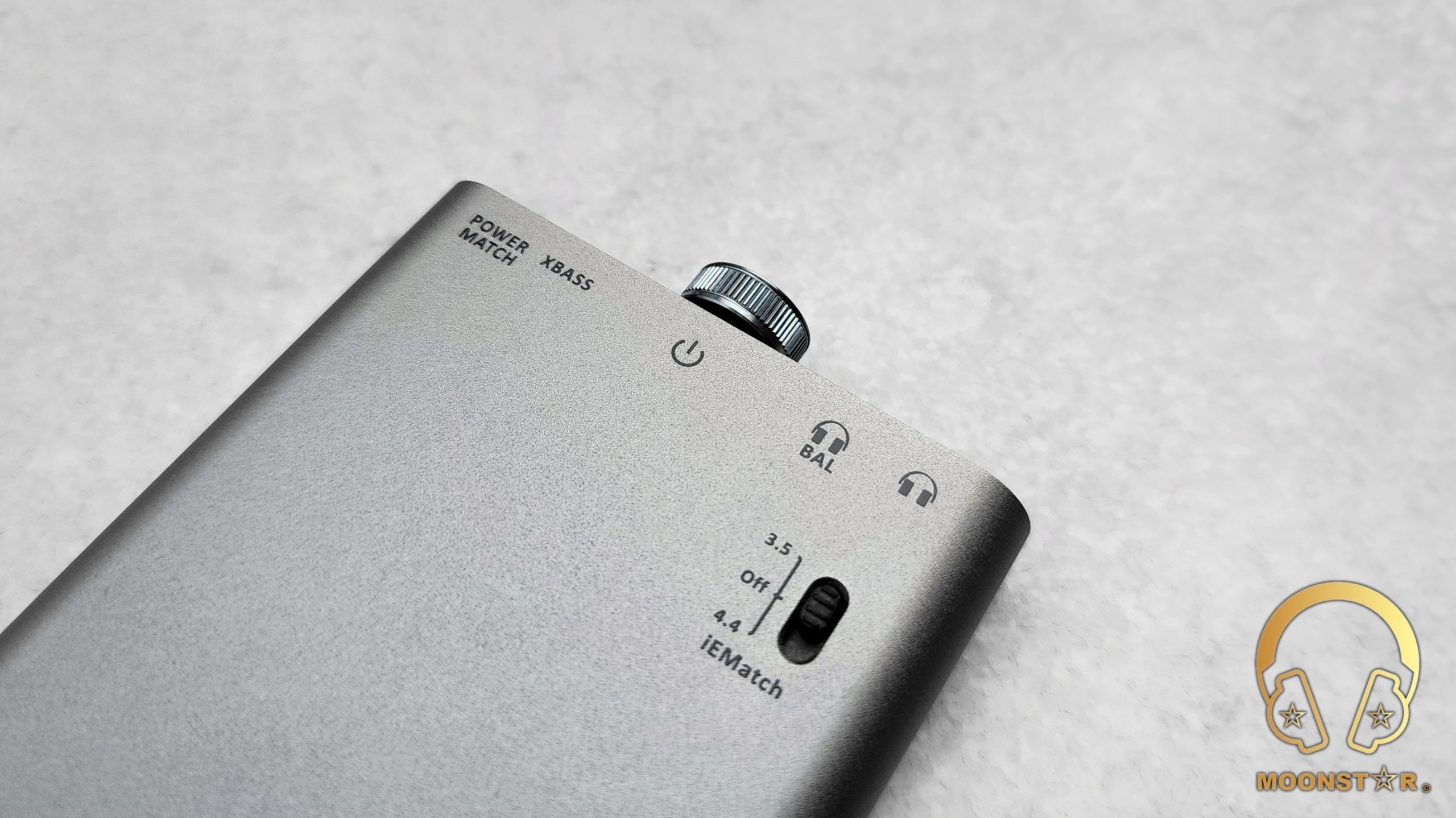 The “XBass” button adds a subtle bass boost, while the “Power Match” button caters to high-impedance headphones by providing a welcome gain boost. The front side houses also two headphone outputs: a 3.5mm S-BAL output for standard single-ended Headphones & IEMs and a 4.4mm BAL output jack for balanced Headphones & IEMs.