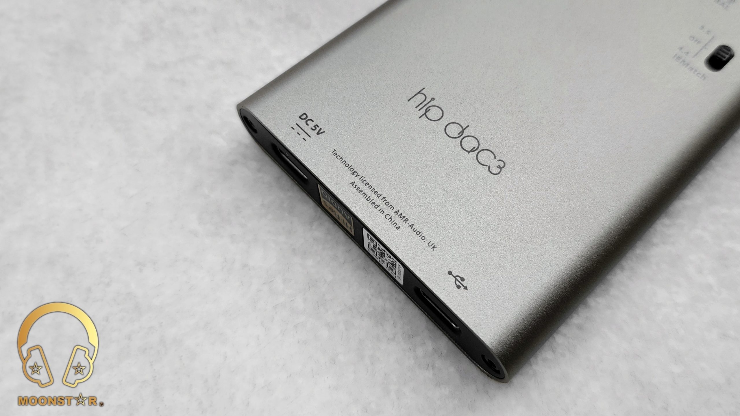 At the rear surface of the hip-dac 3 is the IEMatch slider that allows you to toggle between 3.5mm/4.4mm and OFF. This is a thoughtful inclusion for those using sensitive in-ear monitors, offering further control over your listening experience.
