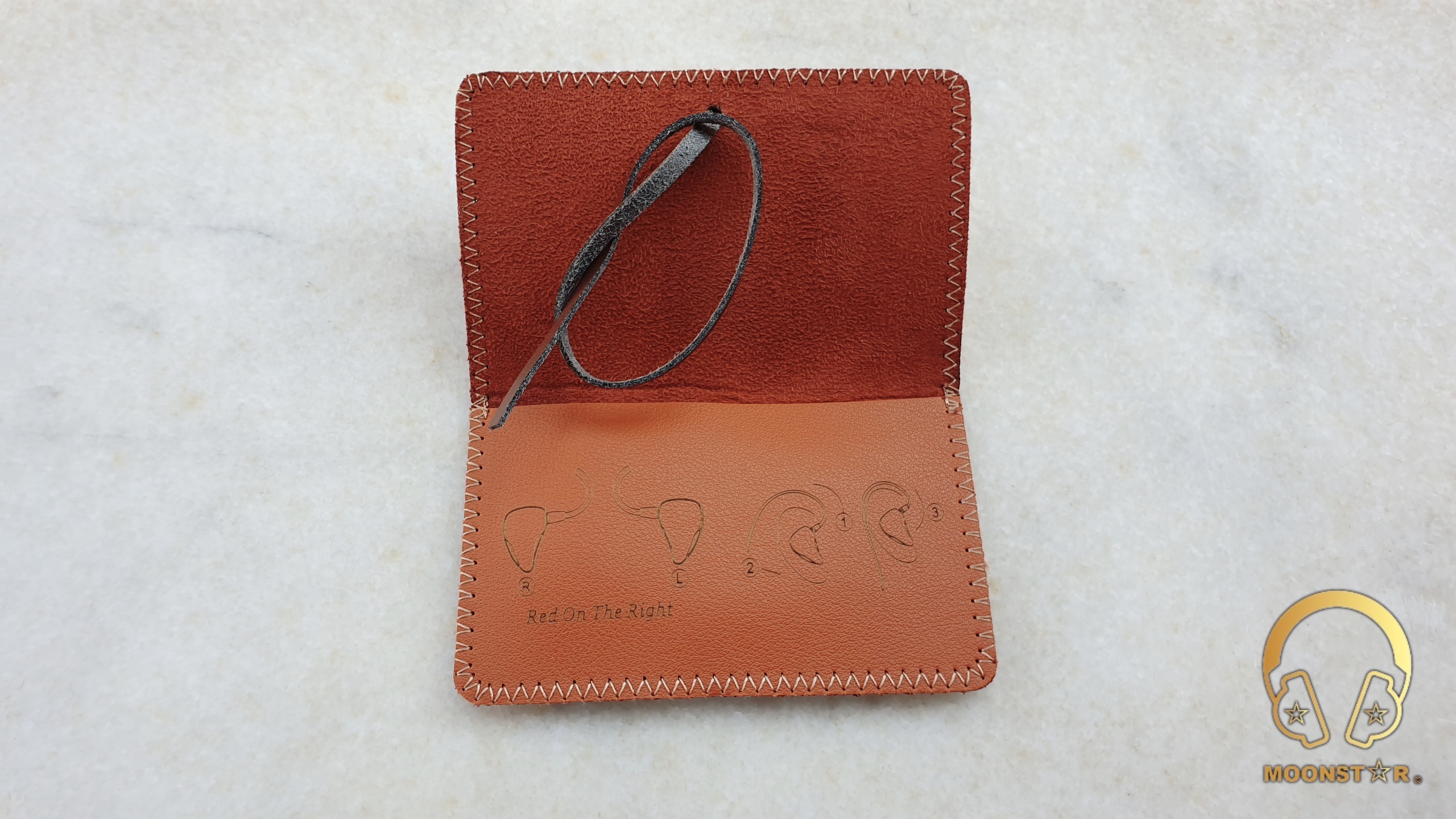 The leather carry pouch is in brown colour and has a pretty unique design with well-made stitching on the sides. This pouch even has a guide on the top, which is a little detail but a nice addition.