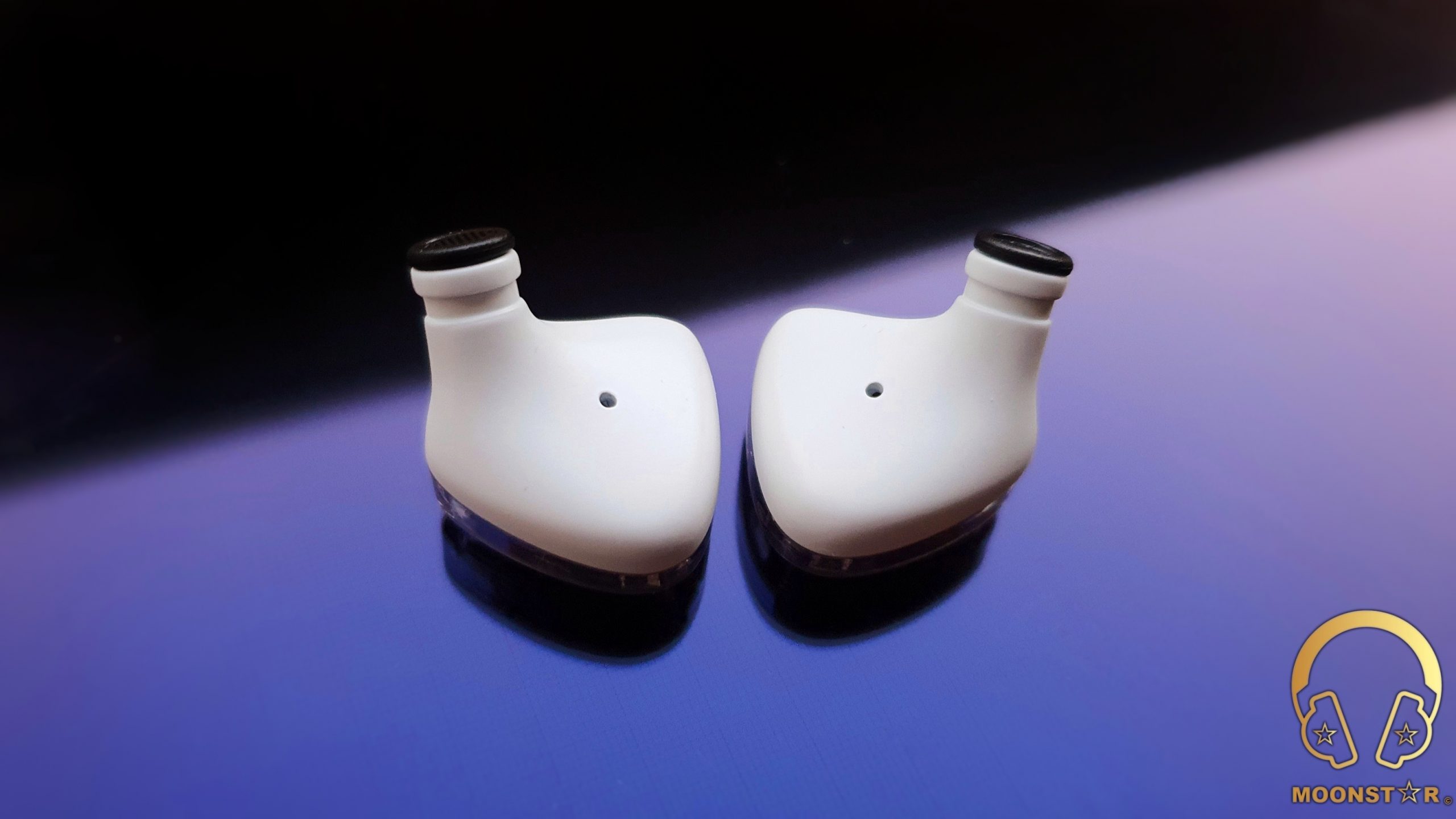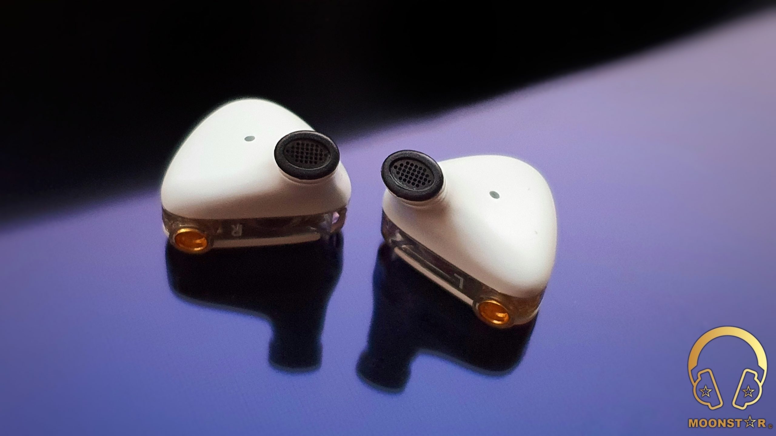 On the top of the monitors are L (Left) or R (Right) markings and the MMCX female connectors.