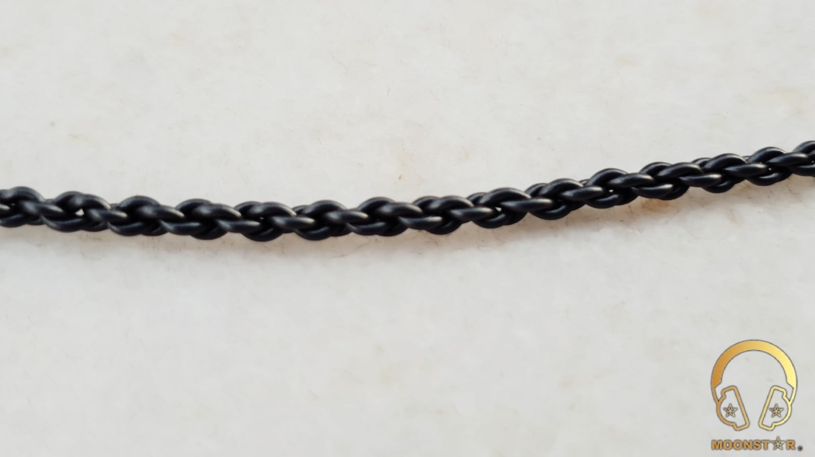 The 2 Pin detachable cable of the Ikko OH1 has a braided design and is made of 5N purity Silver plated OFC (Oxygen-Free Copper) wire with 4 cores. This cable features a dark grey plastic insulation.