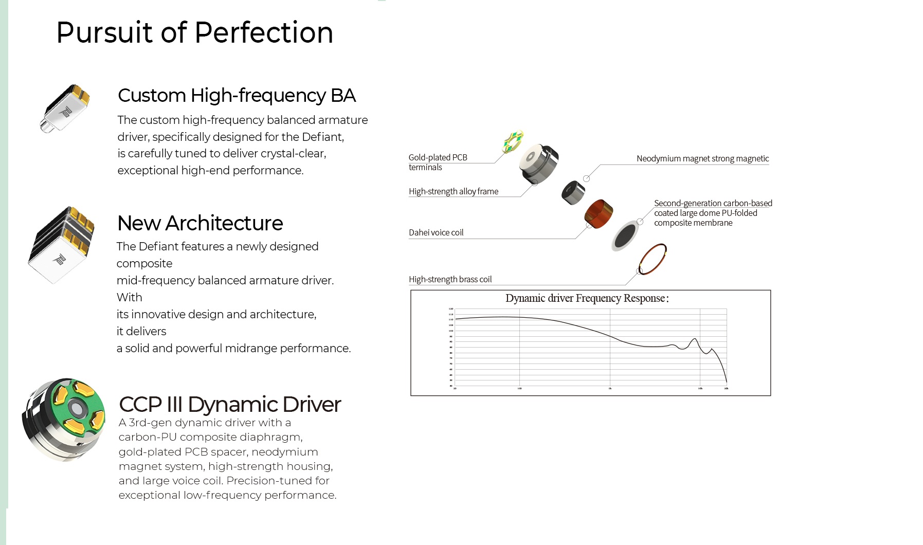 - Driver Technology : 1DD (10mm PU composite diaphragm) + 3BA (dual composite BA for mids, customized BA for highs)