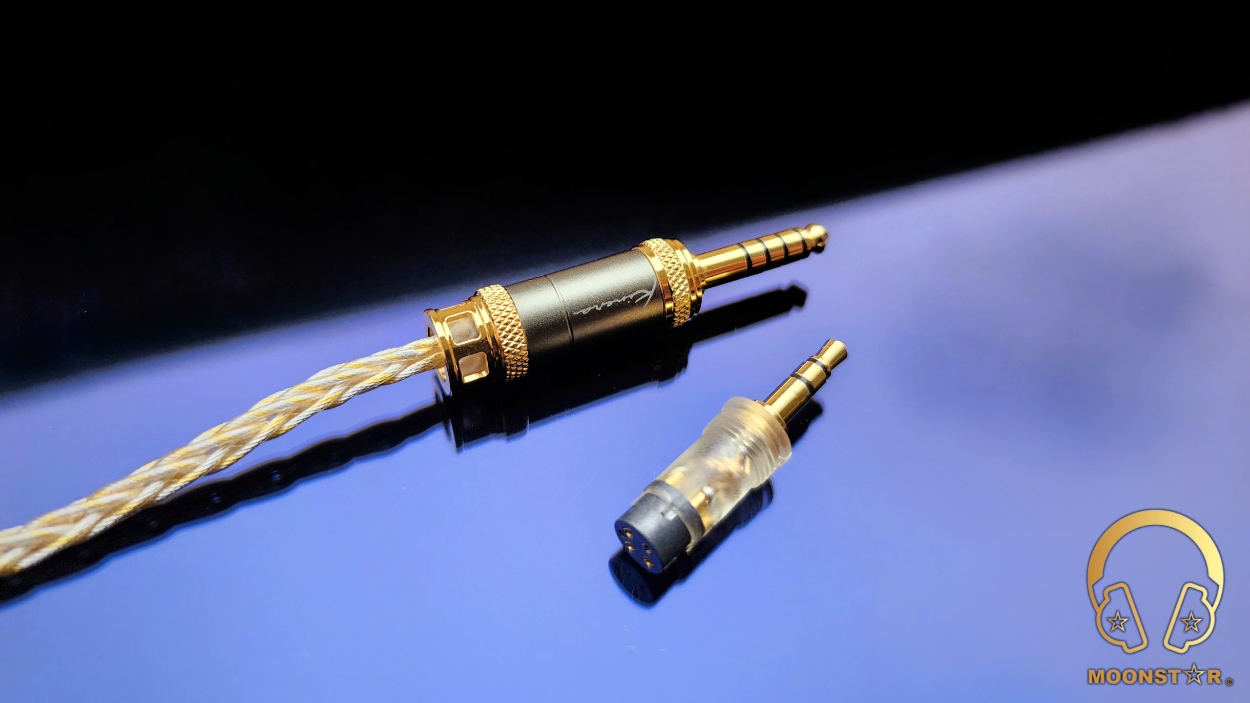 The cable offers interchangeable headphone plugs, including a 3.5mm single-ended and a 4.4mm balanced option. Both plugs are meticulously machined from gold-plated brass using CNC technology, minimizing sound loss while enhancing durability.