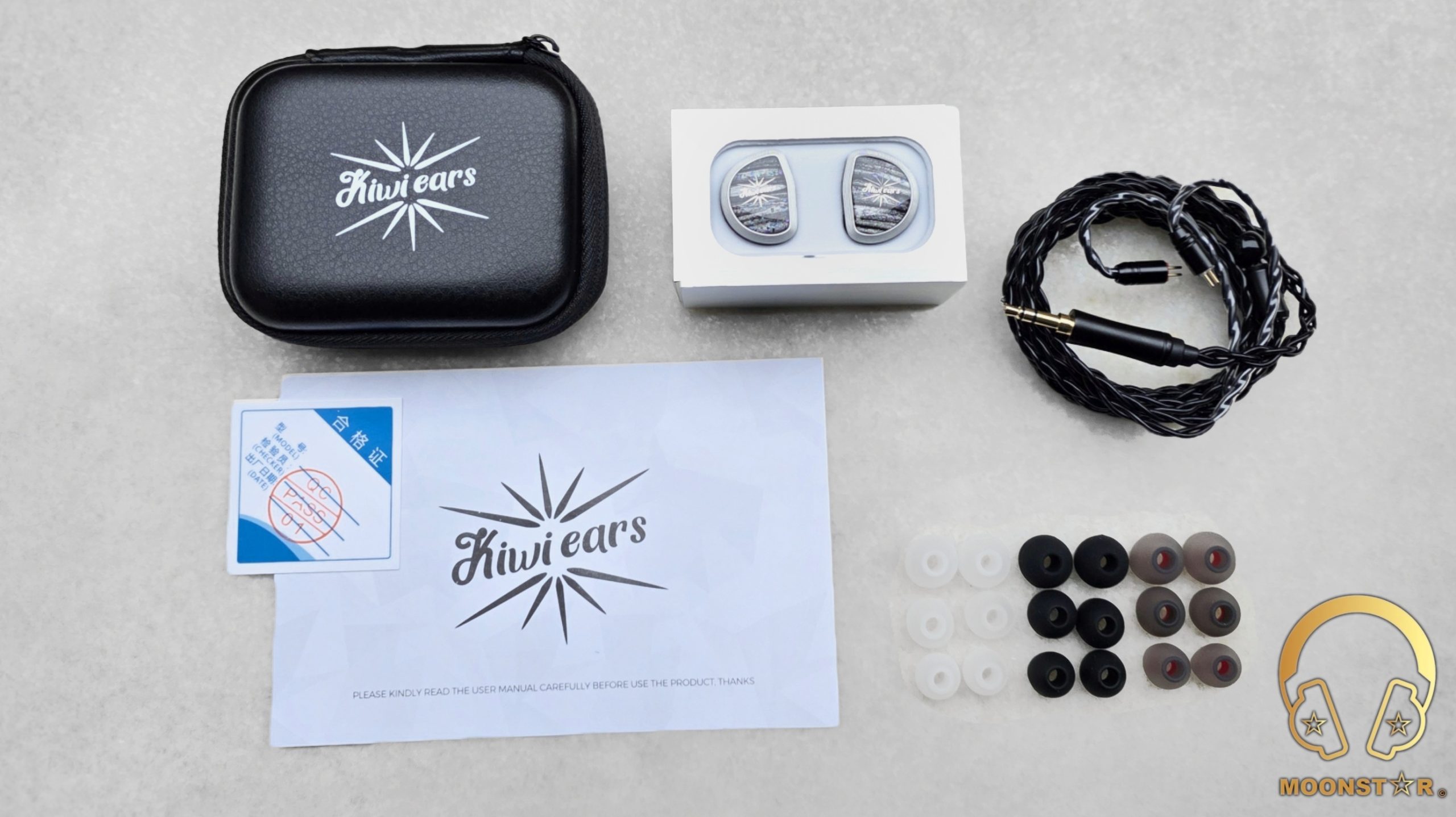 - 1 x pair of Kiwi Ears Aether In-Ear Monitors