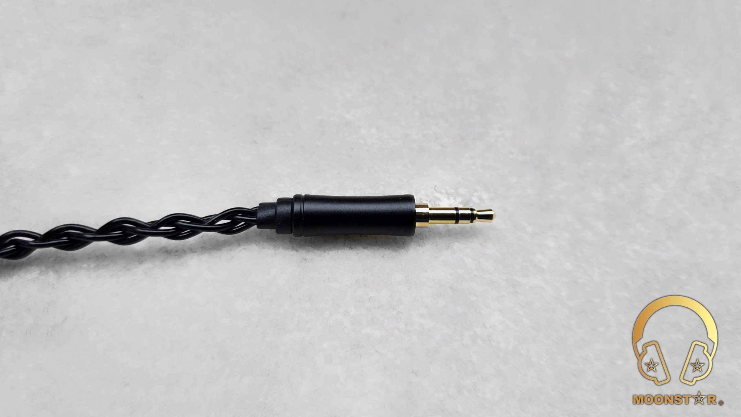 At the end of the cable, there is a 3.5mm headphone plug housed in a durable metal casing. A plastic strain relief is also incorporated into the design, enhancing the overall durability of the plug and improving its resistance to wear during regular handling.