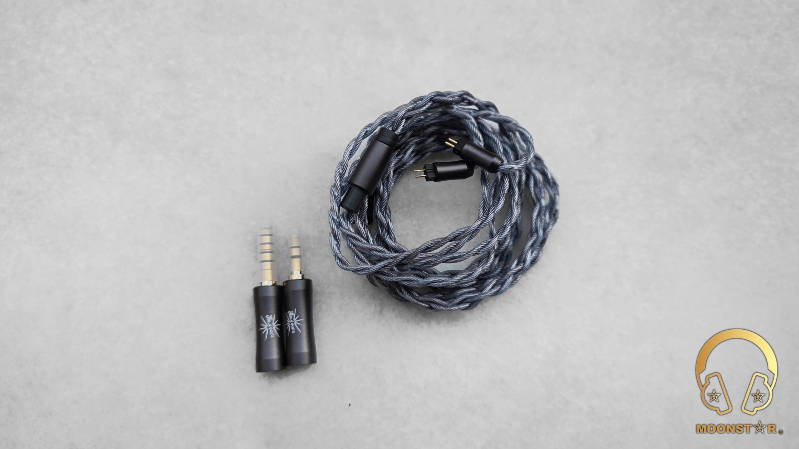 The detachable cable of the Kiwi Ears Astral is crafted from high-purity oxygen-free copper and features a black braided sheath that is notably soft and designed to resist tangling.