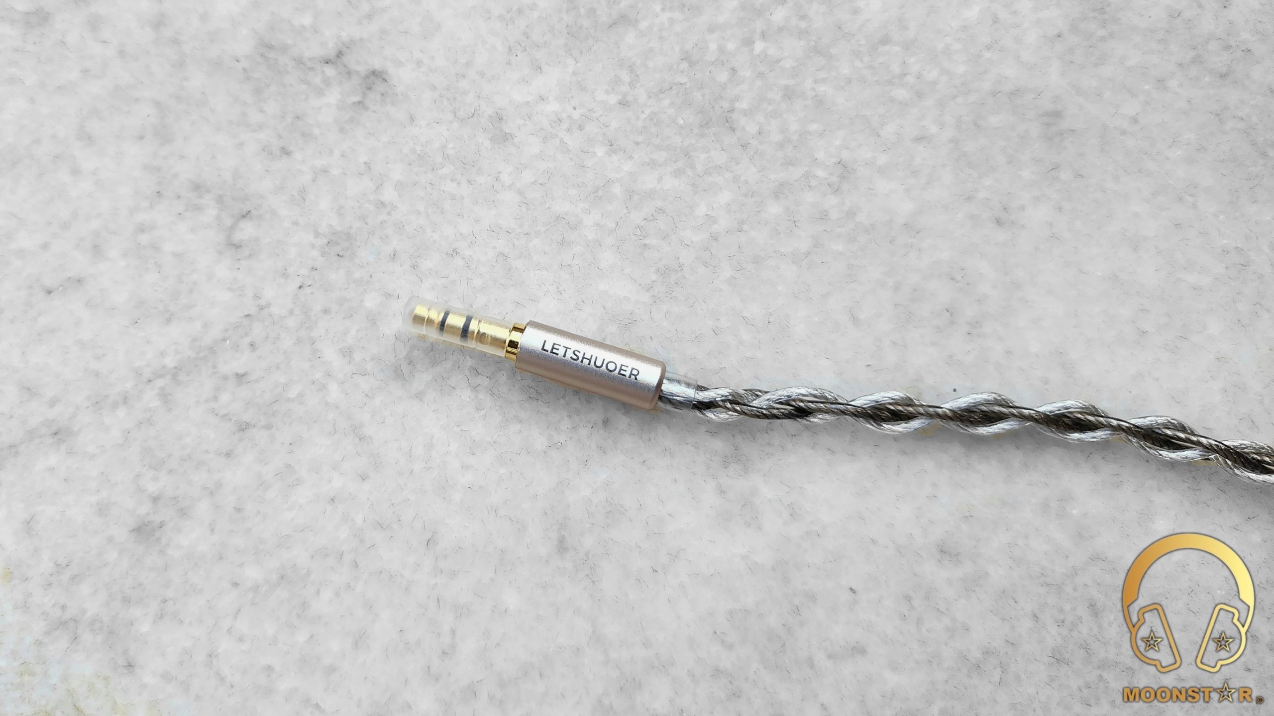 The cable sports a 3.5mm Single Ended headphone plug termination with a straight profiled metal housing that has the LetShuoer branding on the top. The plug sports a semi-transparent plastic strain relief for extra durability.