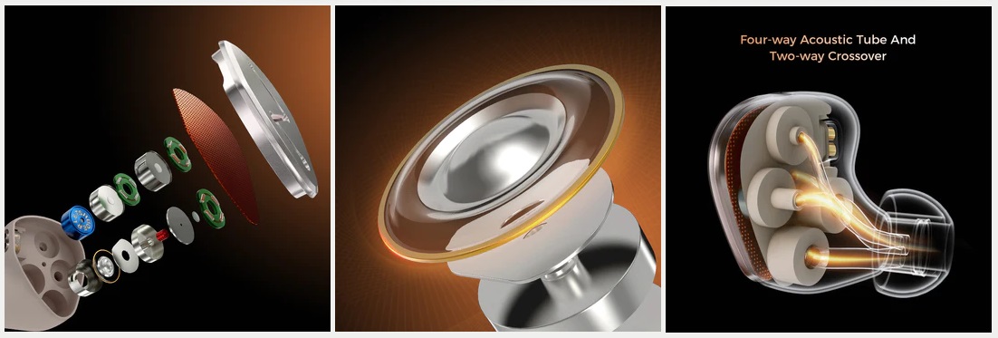 The DZ4 is equipped with a quite interesting driver setup, a combination of 3x 6mm dia. Titanium Dome Dynamic Drivers + 1x 6mm dia. Passive Radiator Driver. The drivers are connected to a dual-pin receptacle via a flexible printed circuit (FPC) crossover board. The DZ4 features a Four-way Acoustic Tube design, which is part of the Two-way Crossover Circuit.