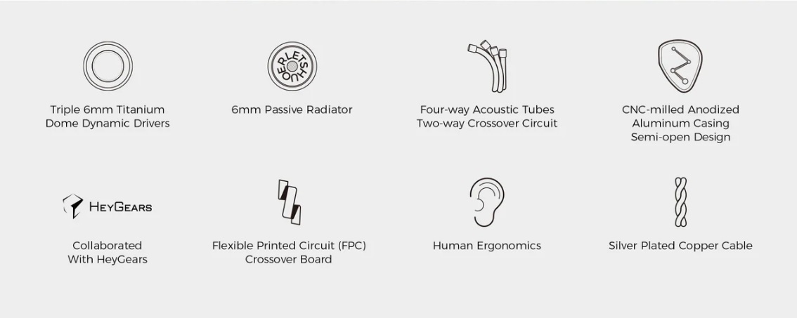 - Driver Configuration : 3x 6mm Dynamic Driver + 1x 6mm Passive Radiator