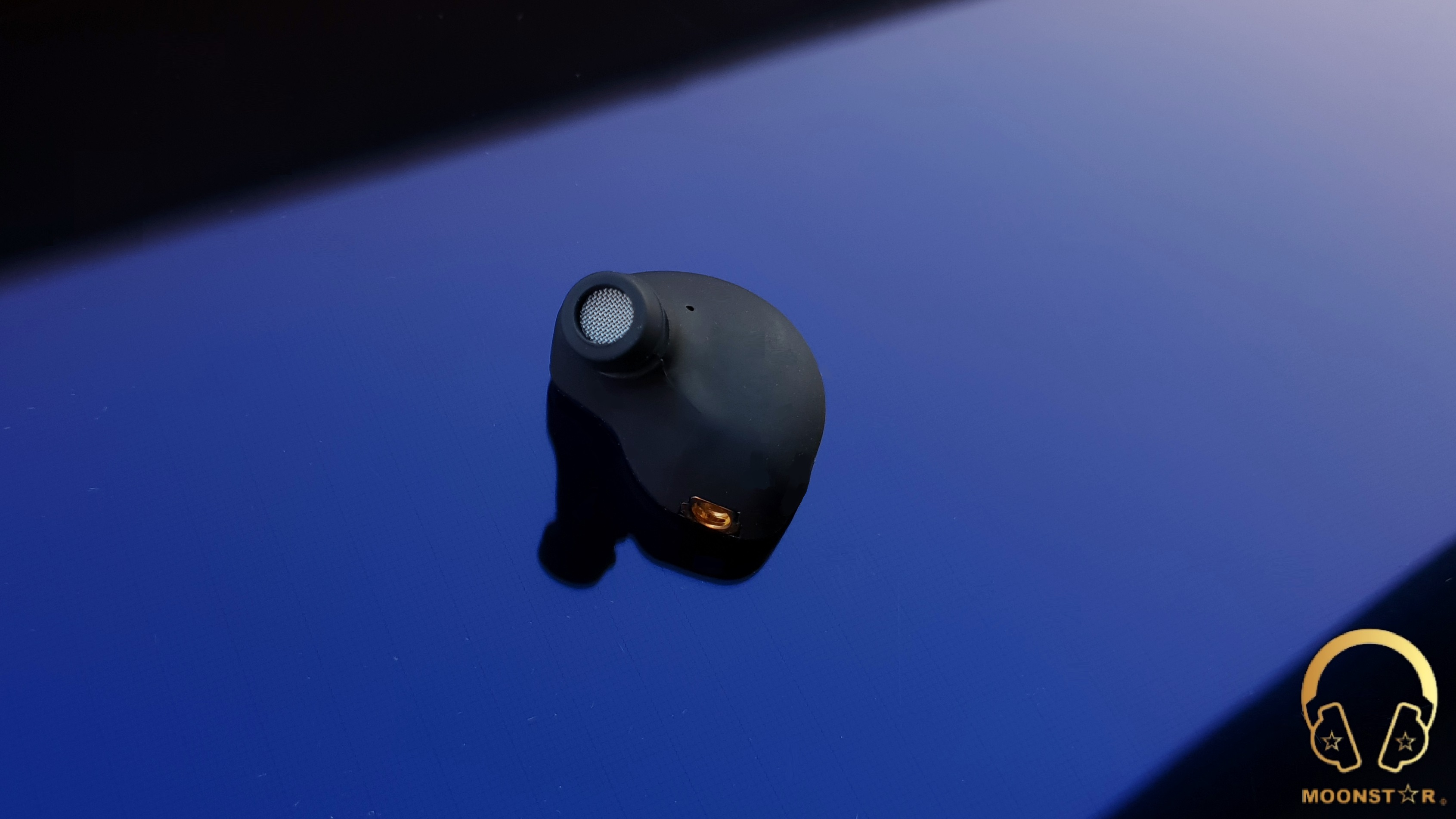 Here you can find a small vent and the slightly angled sound nozzle which has a metal mesh on the top to prevent the insertion of dust or ear-wax.