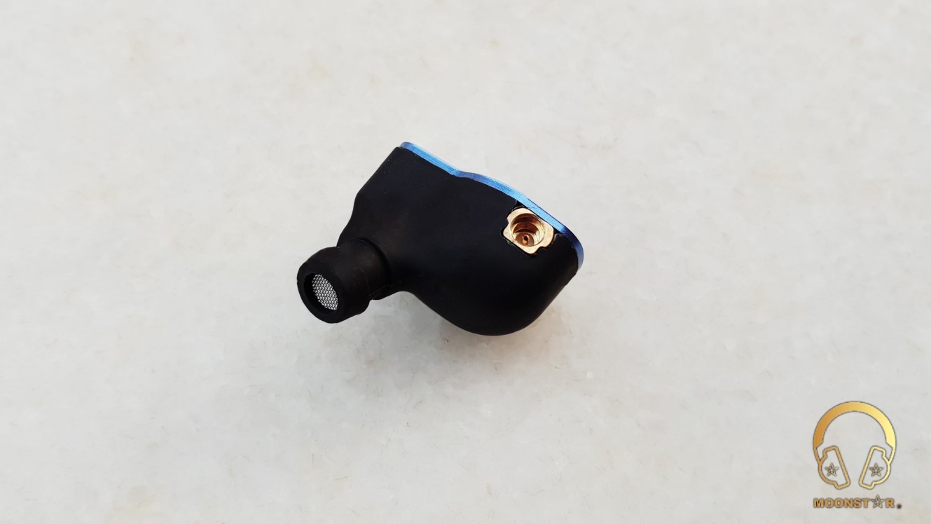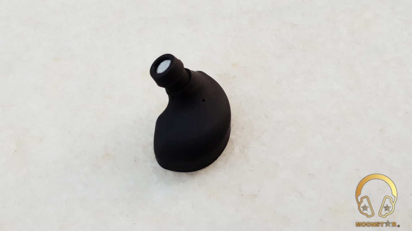 Here you can find a small vent and the slightly angled sound nozzle which has a metal mesh on the top to prevent the insertion of dust or ear-wax.
