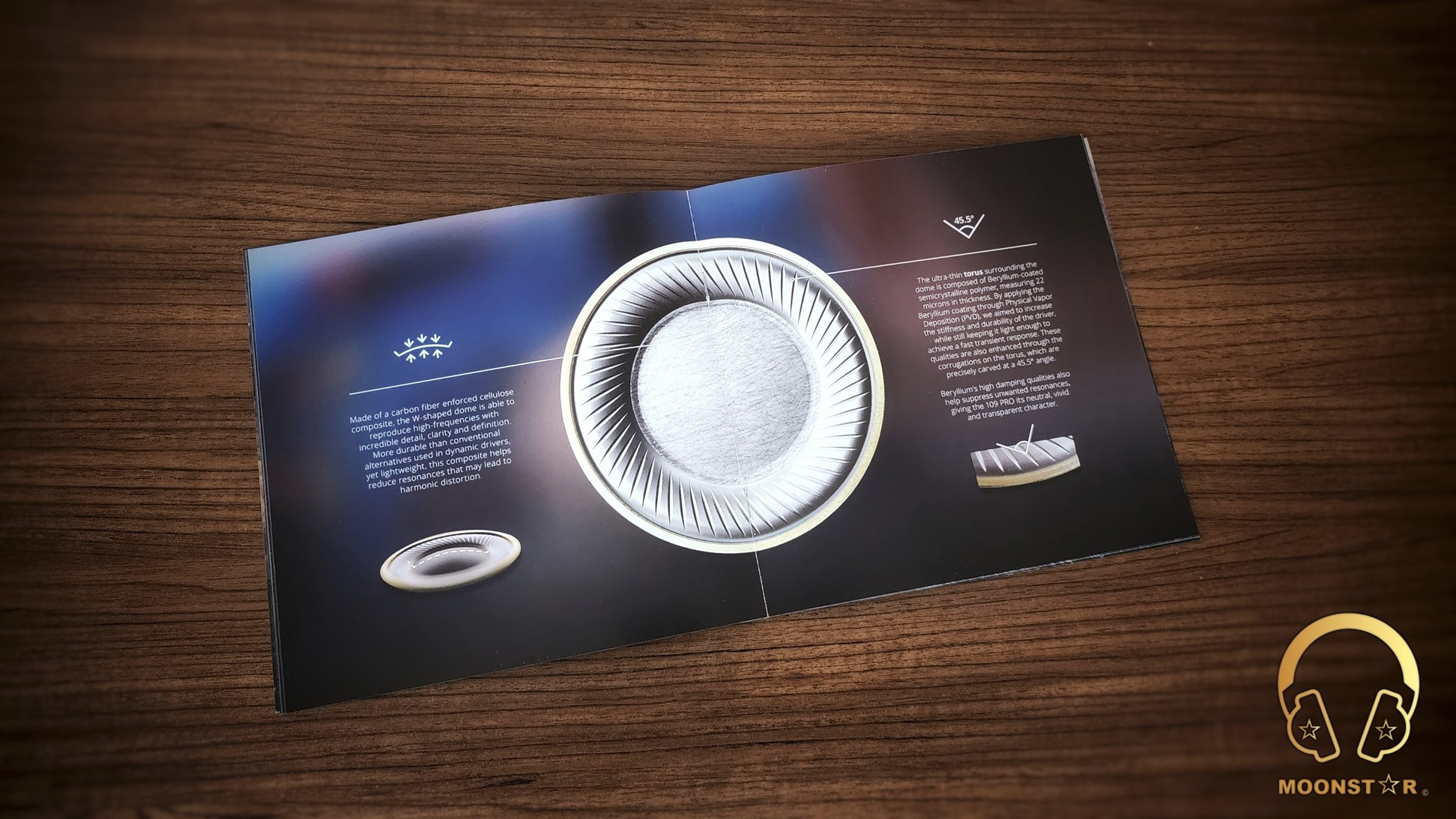 The dynamic drivers do feature a Dual-Composite Diaphragm, which is a combination of Beryllium-Coated Polymer and a special Cellulose-Carbon fiber composite material. The driver is equipped with a copper-zinc alloy stabilizer ring in order to absorb unwanted vibrations.