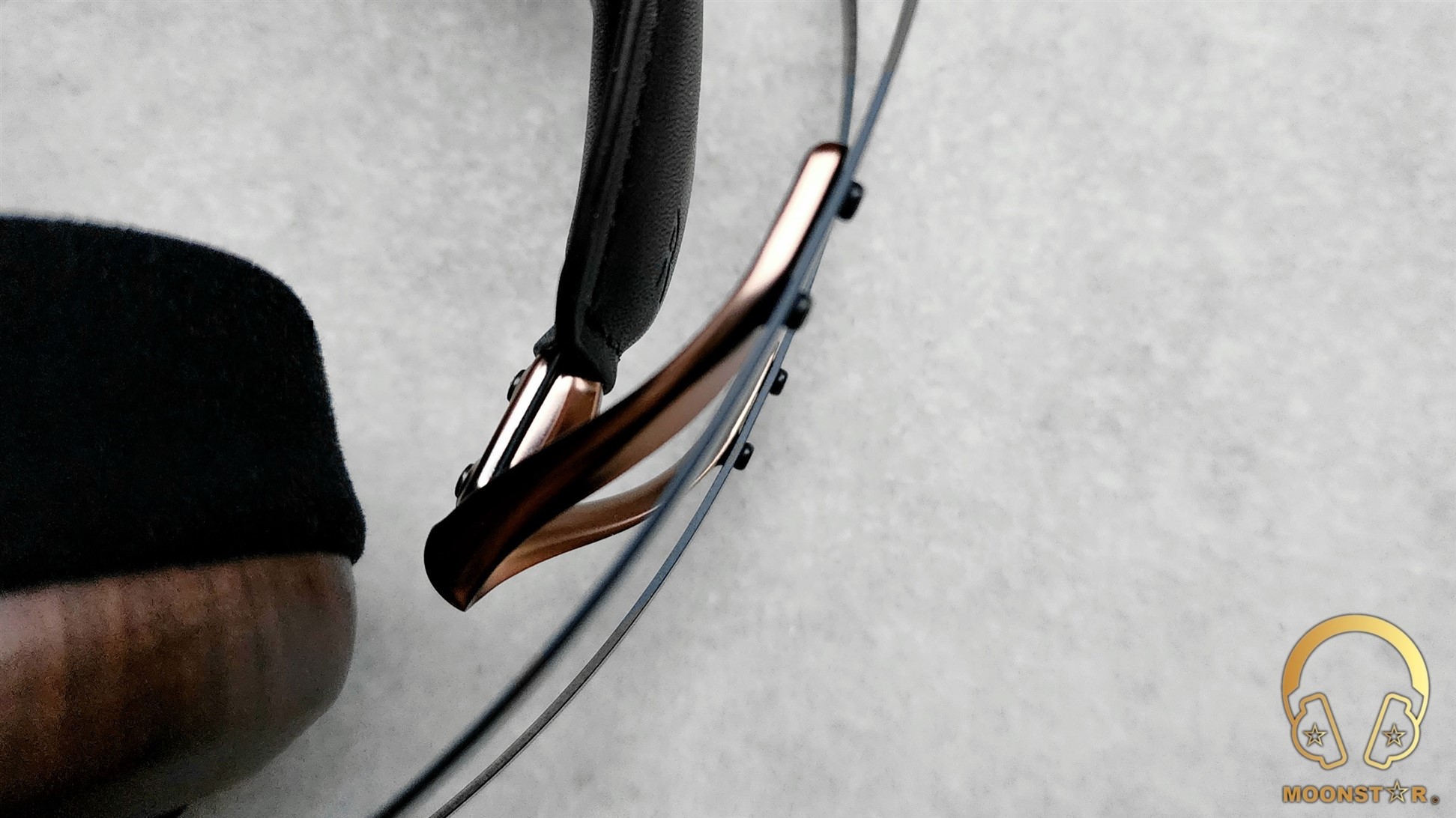 The crown and the spider-shaped black frame on the top of the ear-cups is fixed with a pretty esthetic looking ring zinc alloy ring with the same finish in copper color like the wishbones on both sides.