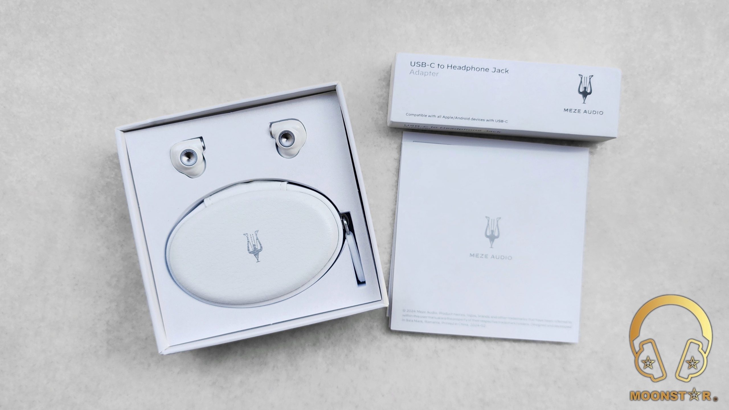 The protective eco-leather pouch in white color looks quite stylish and has the MEZE Audio brand logo in silver on the top. However, the size of the case could be slightly larger.