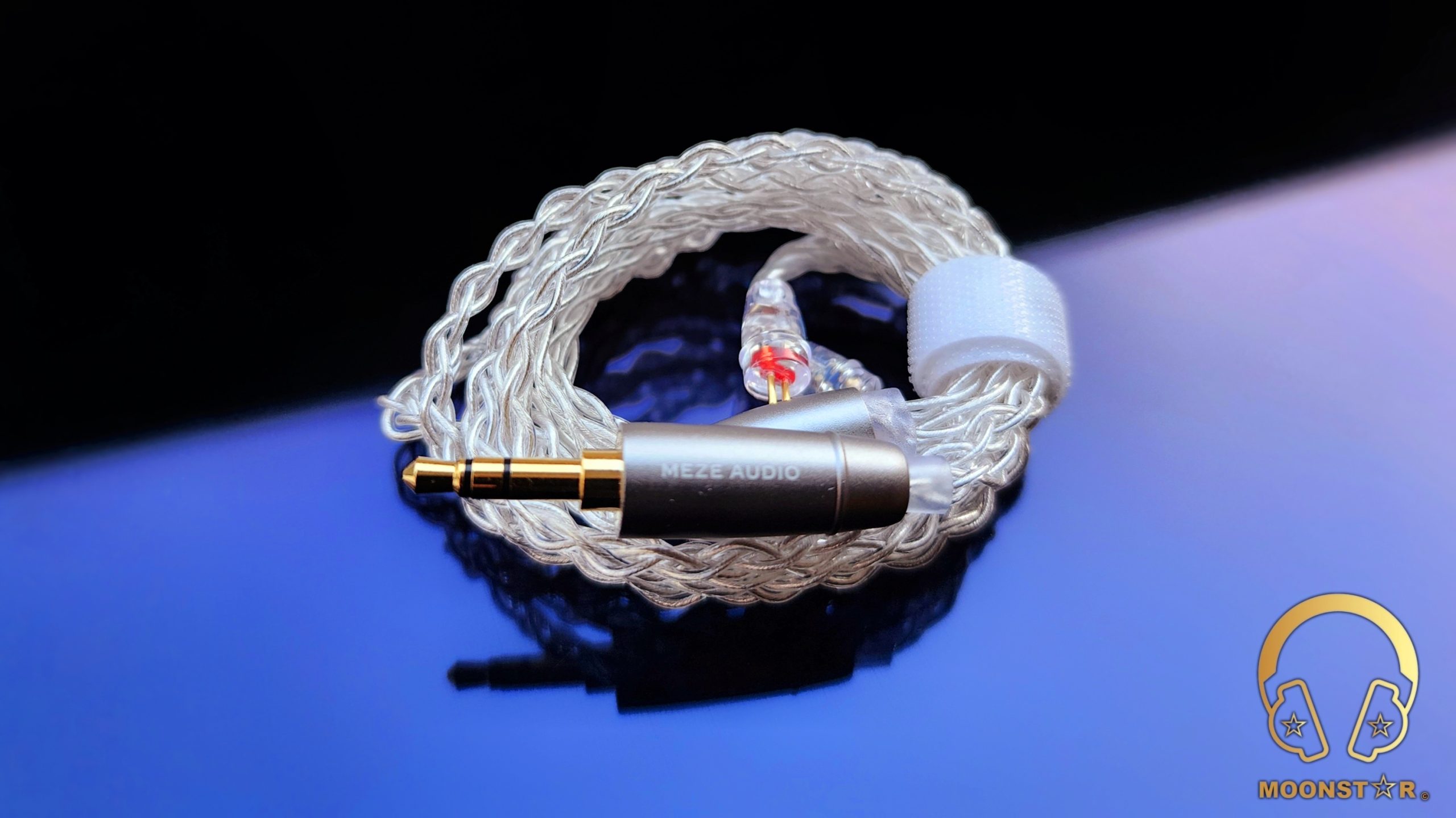 The cable also sports a transparent chin slider for comfortable wear and a stylish metal Y-splitter adorned with the Meze Audio branding.