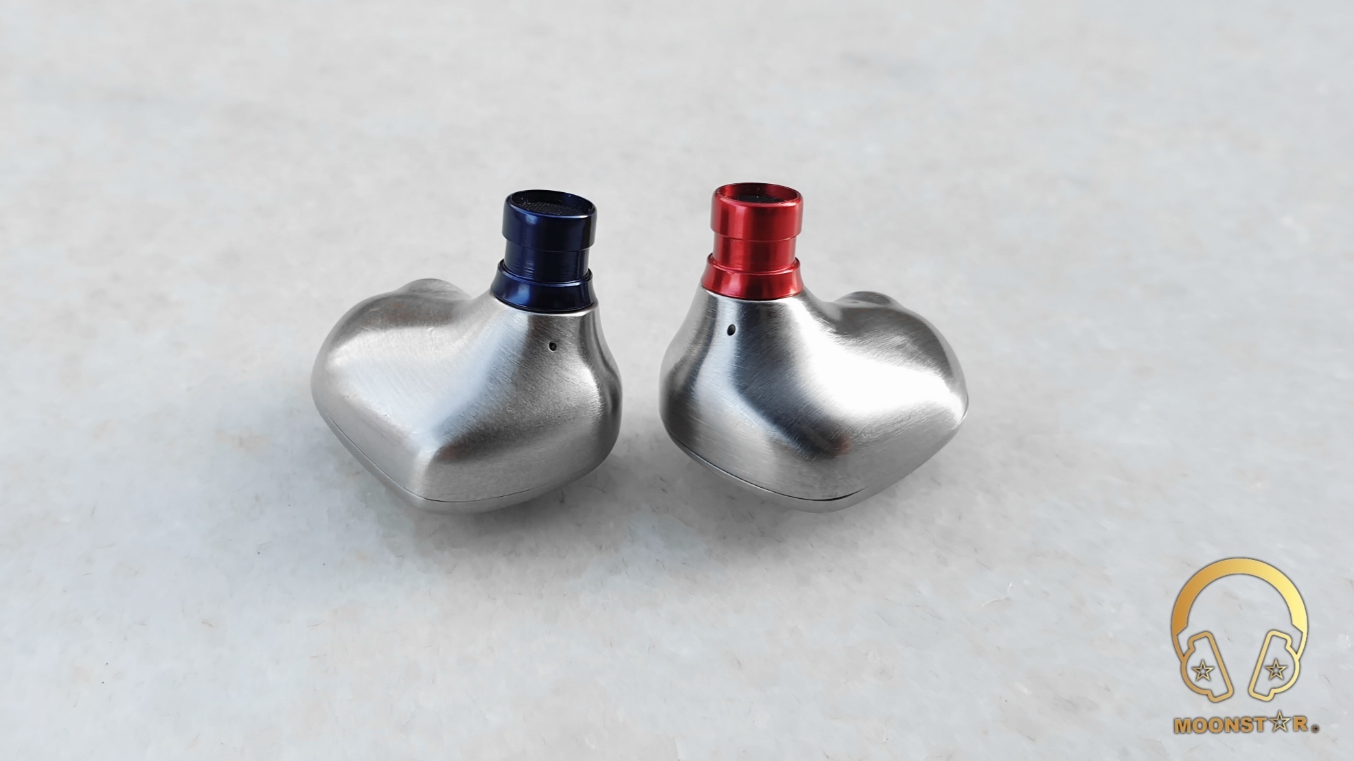 The sound nozzles are made of metal and do have a color coding which is red for right and blue for the left earpiece. Near the sound nozzle is a small vent for the electrodynamic driver.