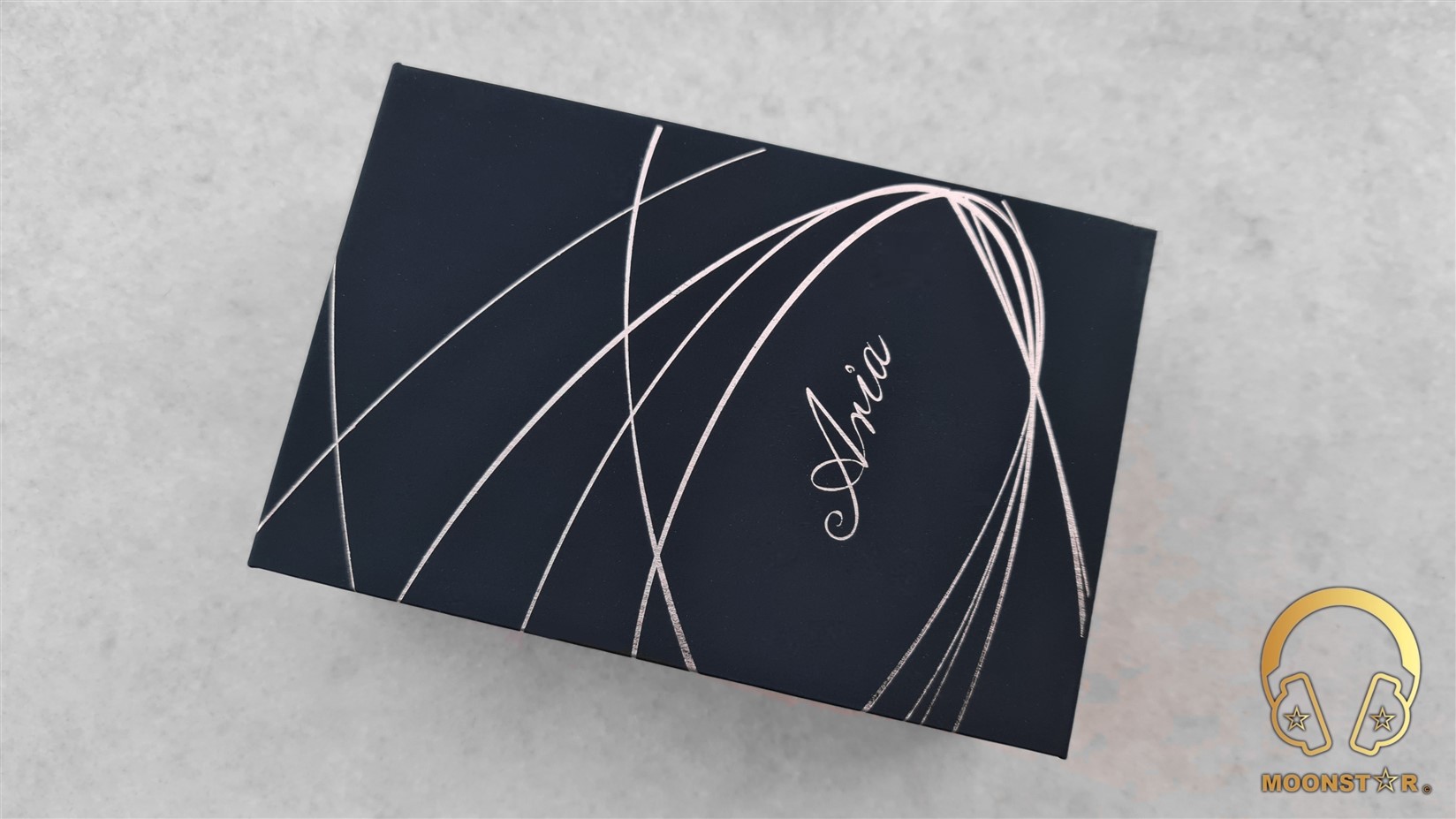 The Moondrop Aria comes in a rectangular black box with a stylish Aria branding in rose gold color on the top. This box was wrapped with a black cardboard sleeve that has an Anime character and the Aria branding on the top and product related specification and a frequency response graphic at the rear side.