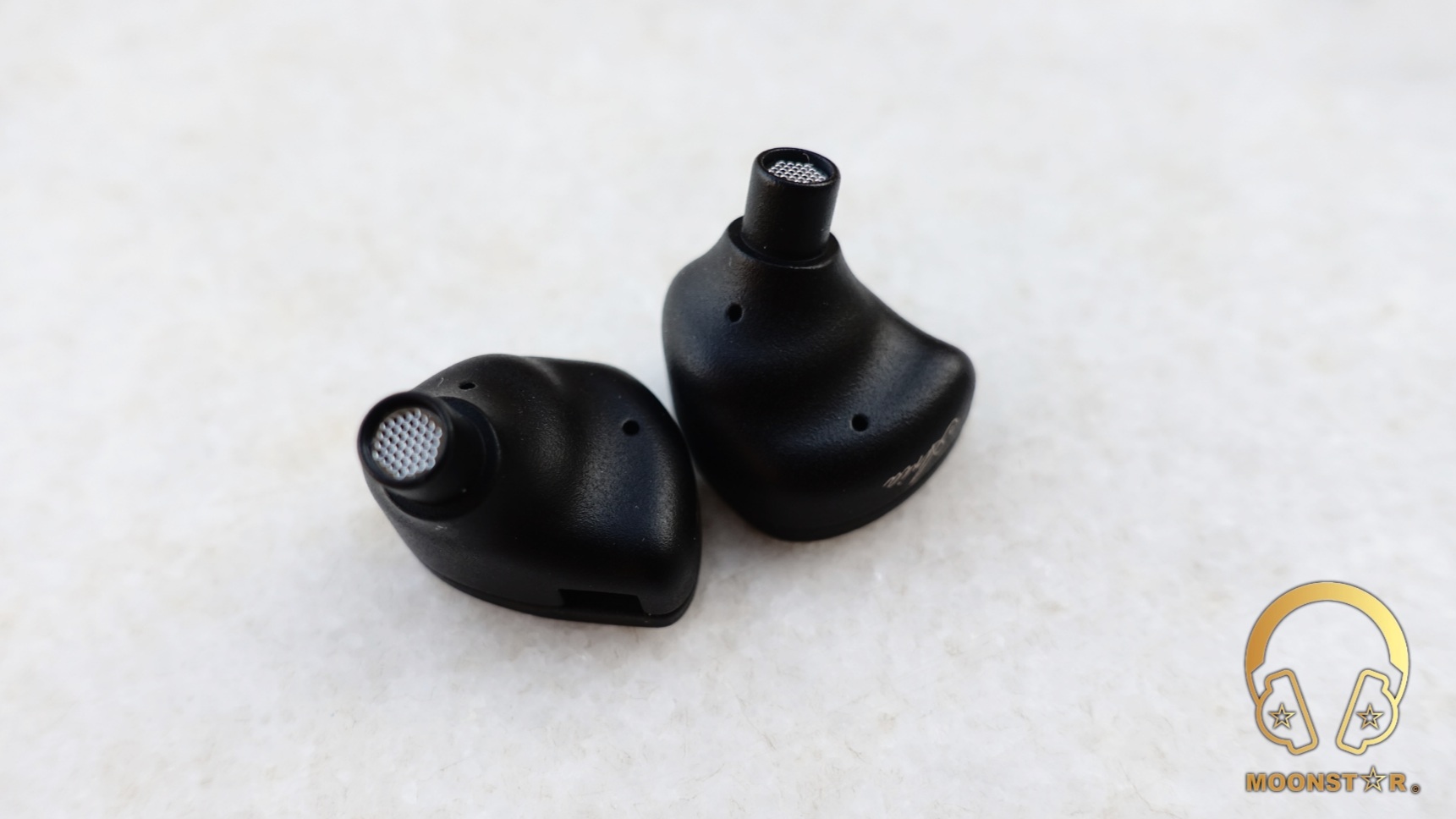 At the back side of the monitor shell is the sound nozzle and two vents for the dynamic driver. One of the vents is near the sound nozzle while the second one is near edge of the back part.
