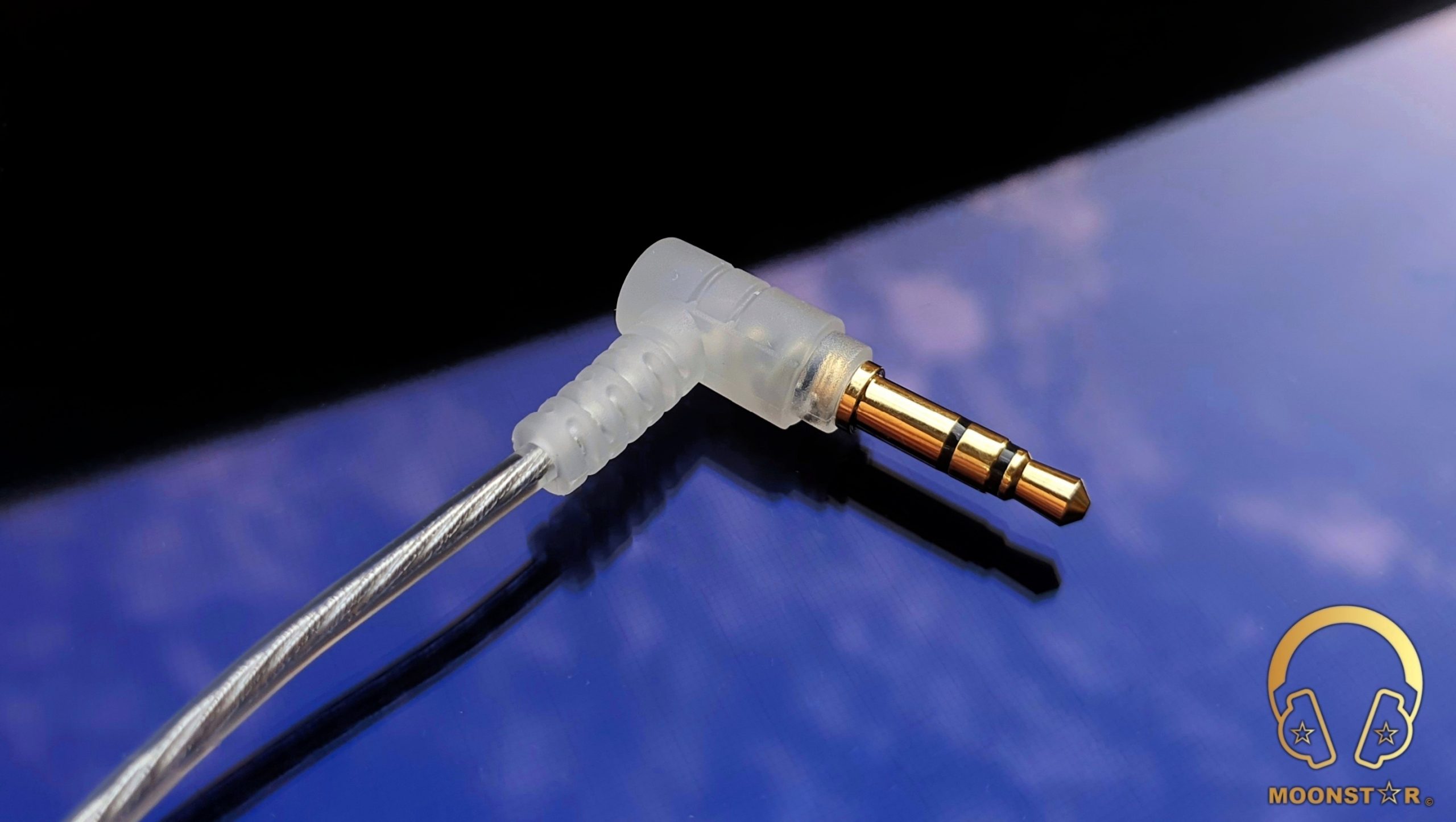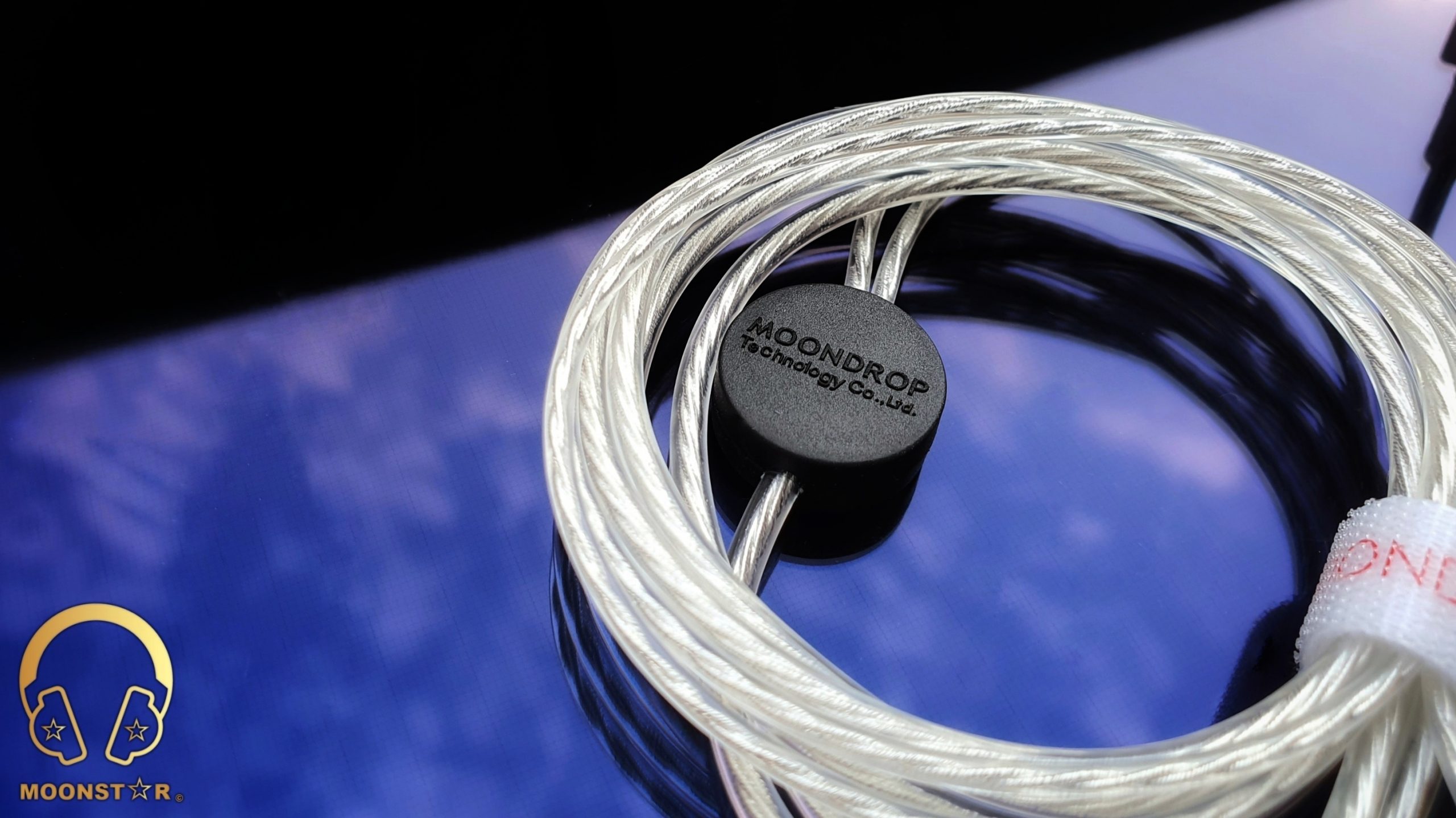 The cable sports a plastic (rubber) Y splitter in black color that sports some product related brandings (Moondrop) on its surface.