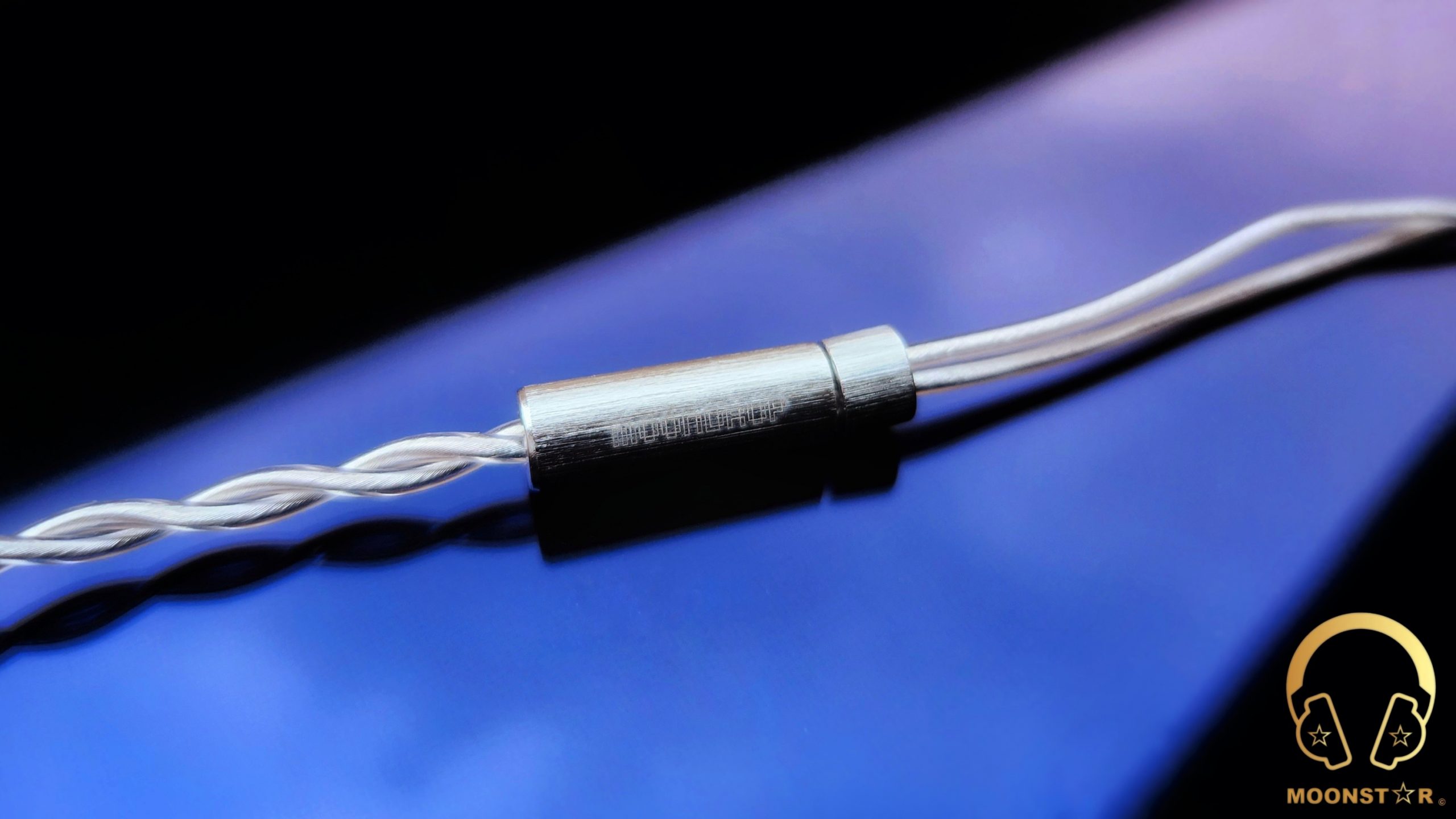 The cable sports a metal Y splitter and chin slider, while the y-splitter has the Moondrop branding on its surface.
