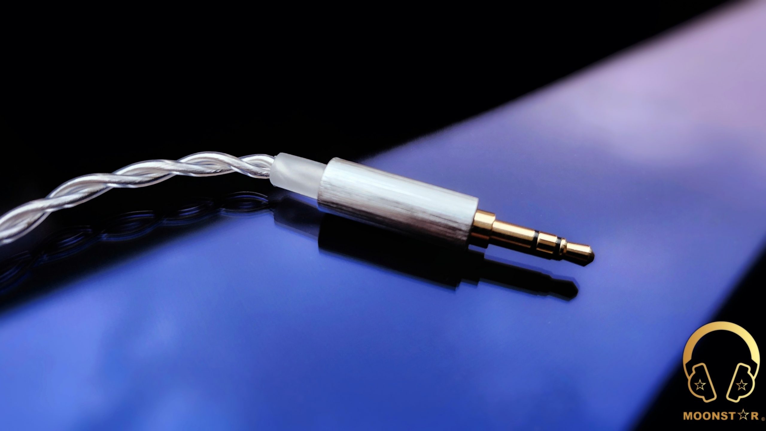 The Moondrop Blessing 3 is equipped with a detachable Silver-Plated OFC (Oxygen Free Copper) Wire cable that sports 0.78m diameter 2-Pin connectors and a 3.5mm headphone plug. The cable has a transparent TPU outer insulation and shows a braided design.
