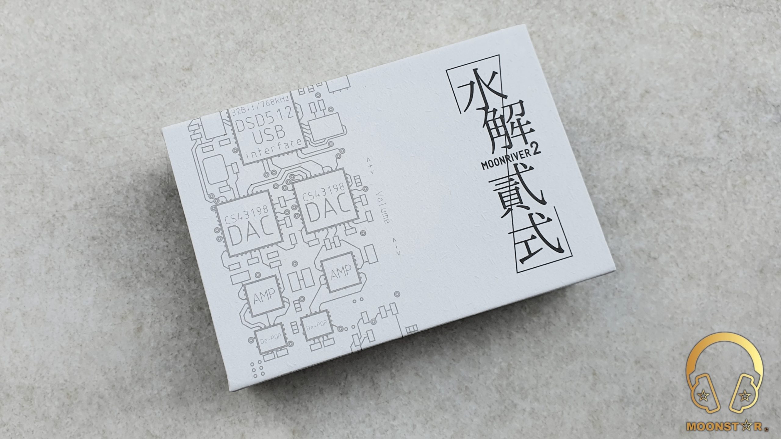 The Moondrop Moonriver 2 USB DAC/Amplifier dongle came in a small white box that has some shows an illustration of the internal circuit board & product related brandings on the top and some device specific technical specifications at the rear surface.