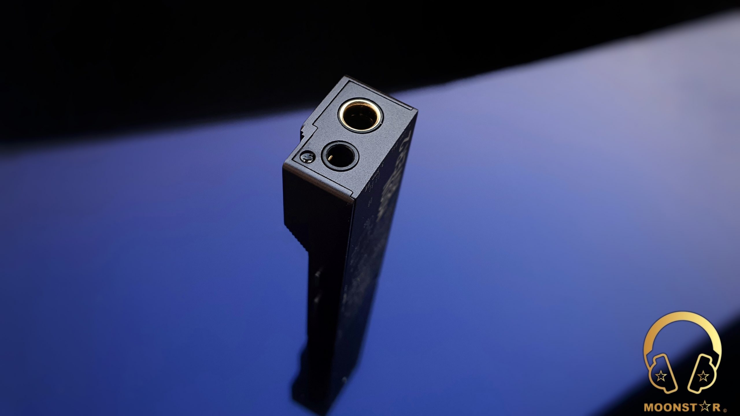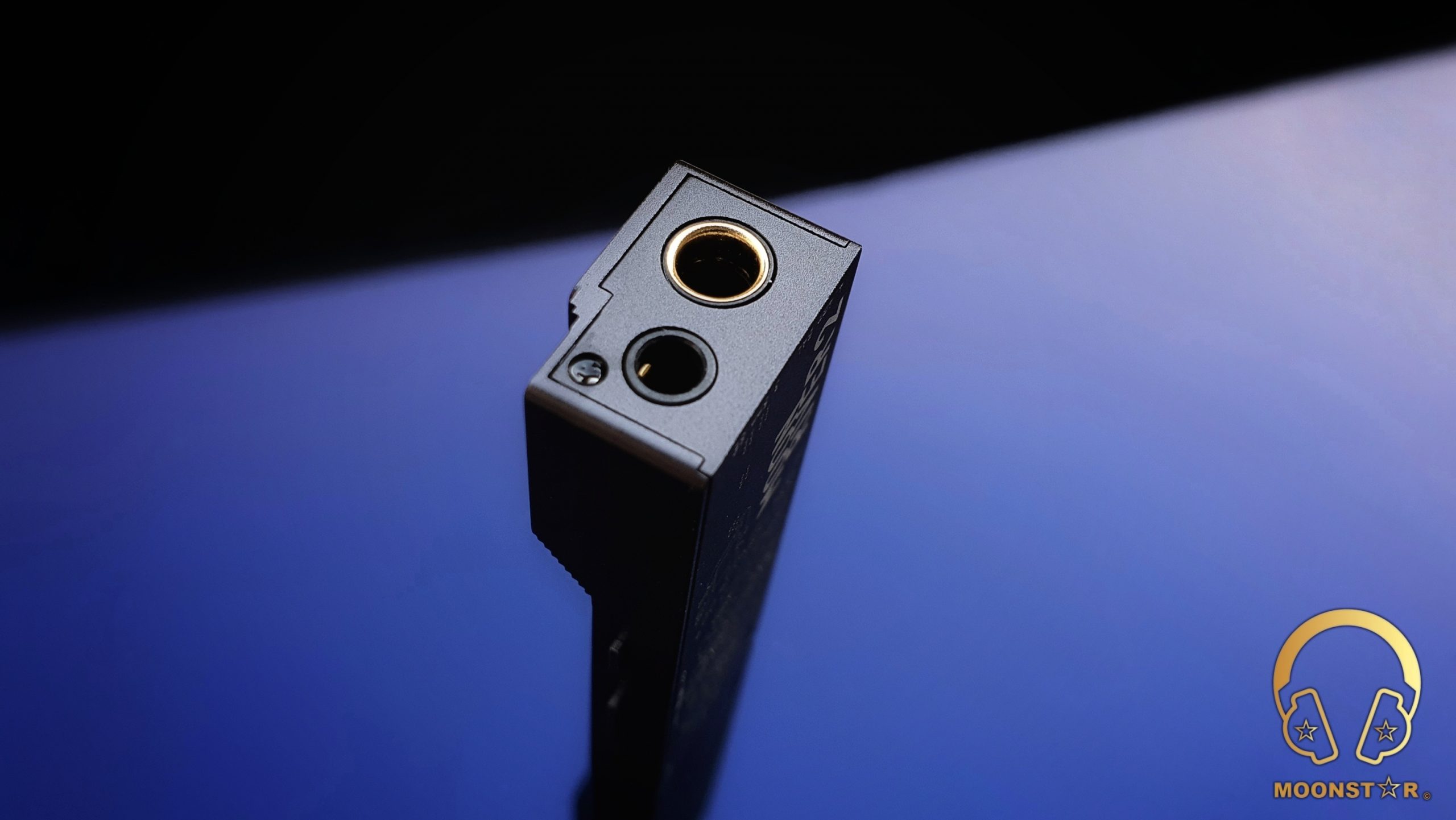 On the other end of the Moonriver 2 are the 3.5mm Single Ended (TRS) and 4.4mm Balanced (TRRRS) analog outputs with a gold plated interior surface and a small fixing screw.