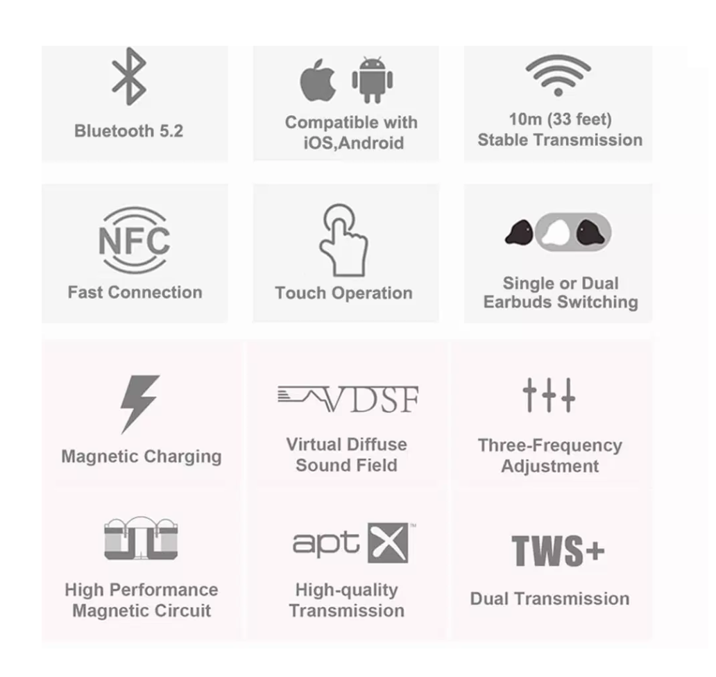 The Built-in DSP of the Bluetooth chip and the dynamic tuning technology makes the Sparks almost in line with the new VDSF target response to minimize the disadvantages of TWS IEM’s in terms of sound performance over wired IEM’s.