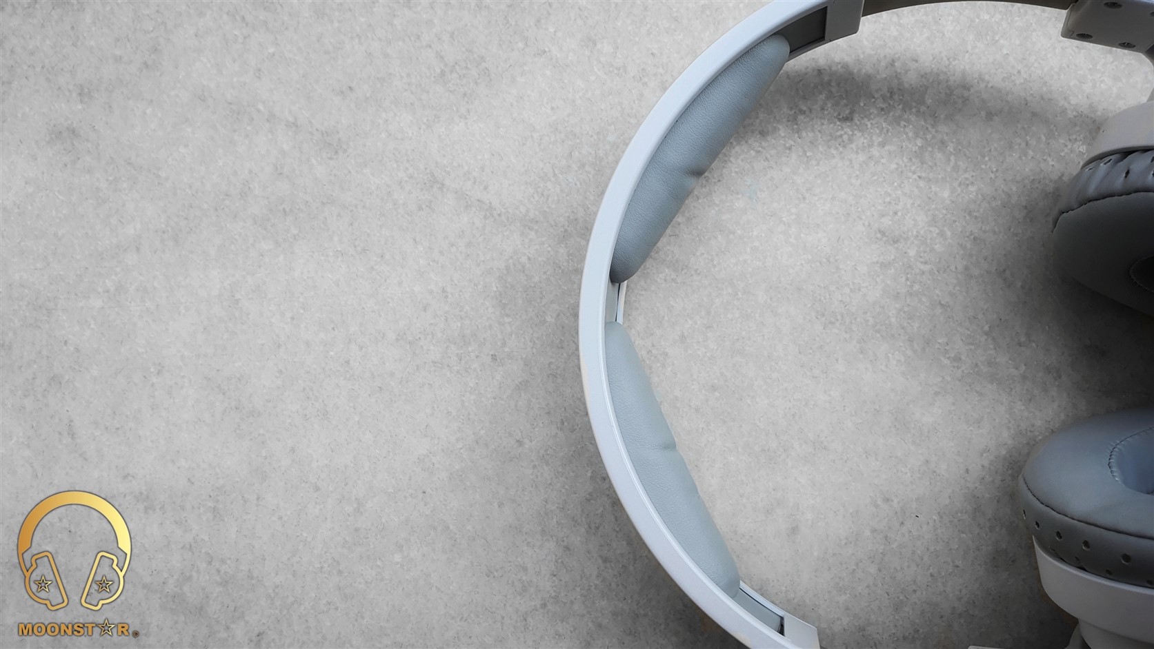 The headband padding and outer surface of the earpads have a surface made of pleather (protein leather) that is also in white color.
