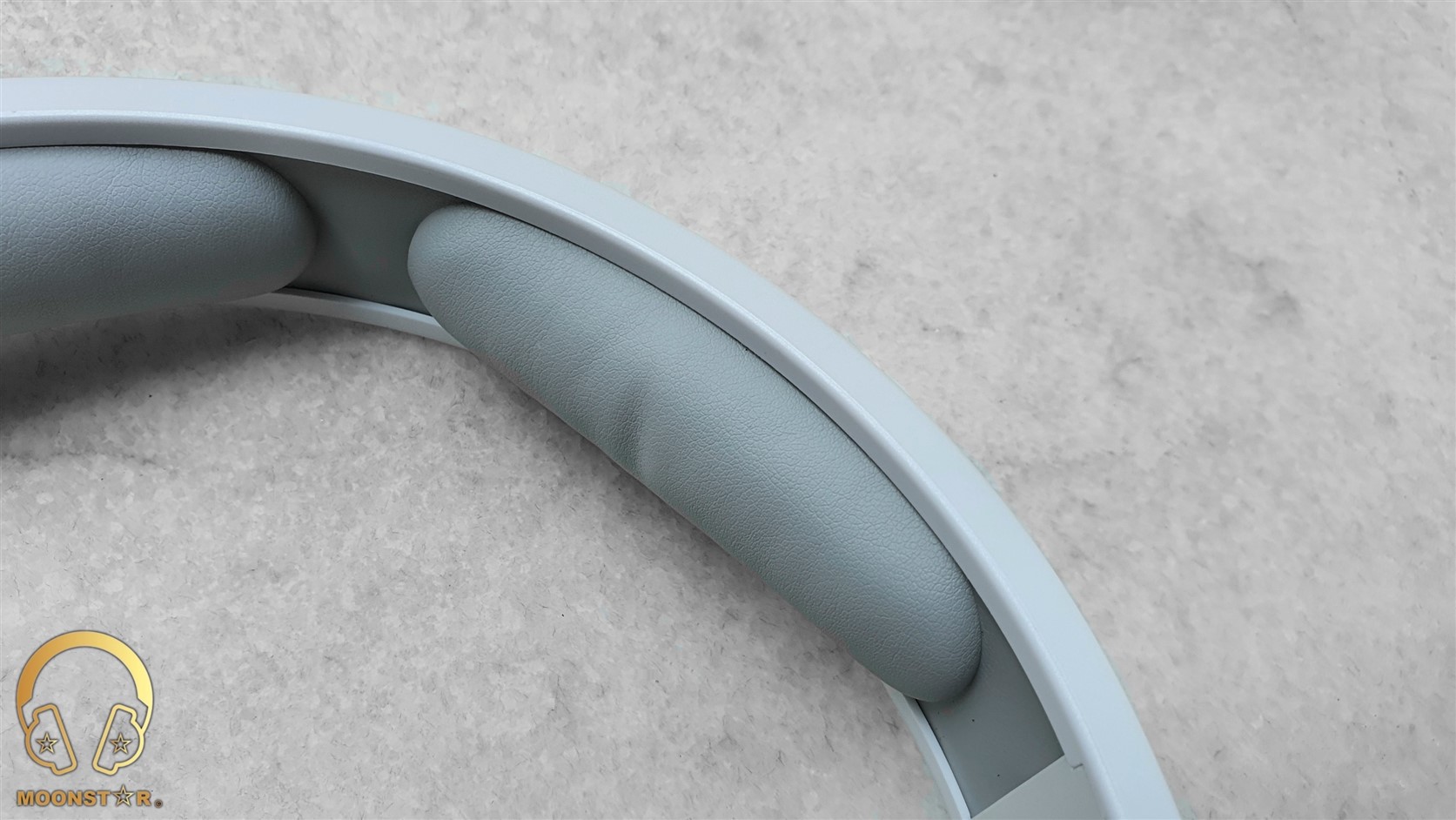 The headband padding and outer surface of the earpads have a surface made of pleather (protein leather) that is also in white color.