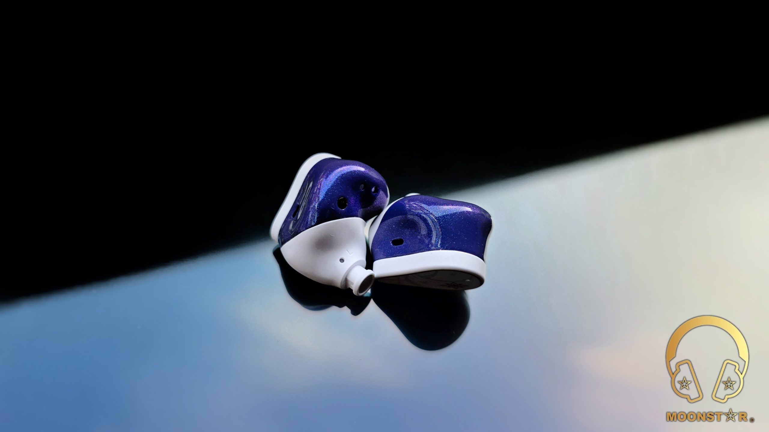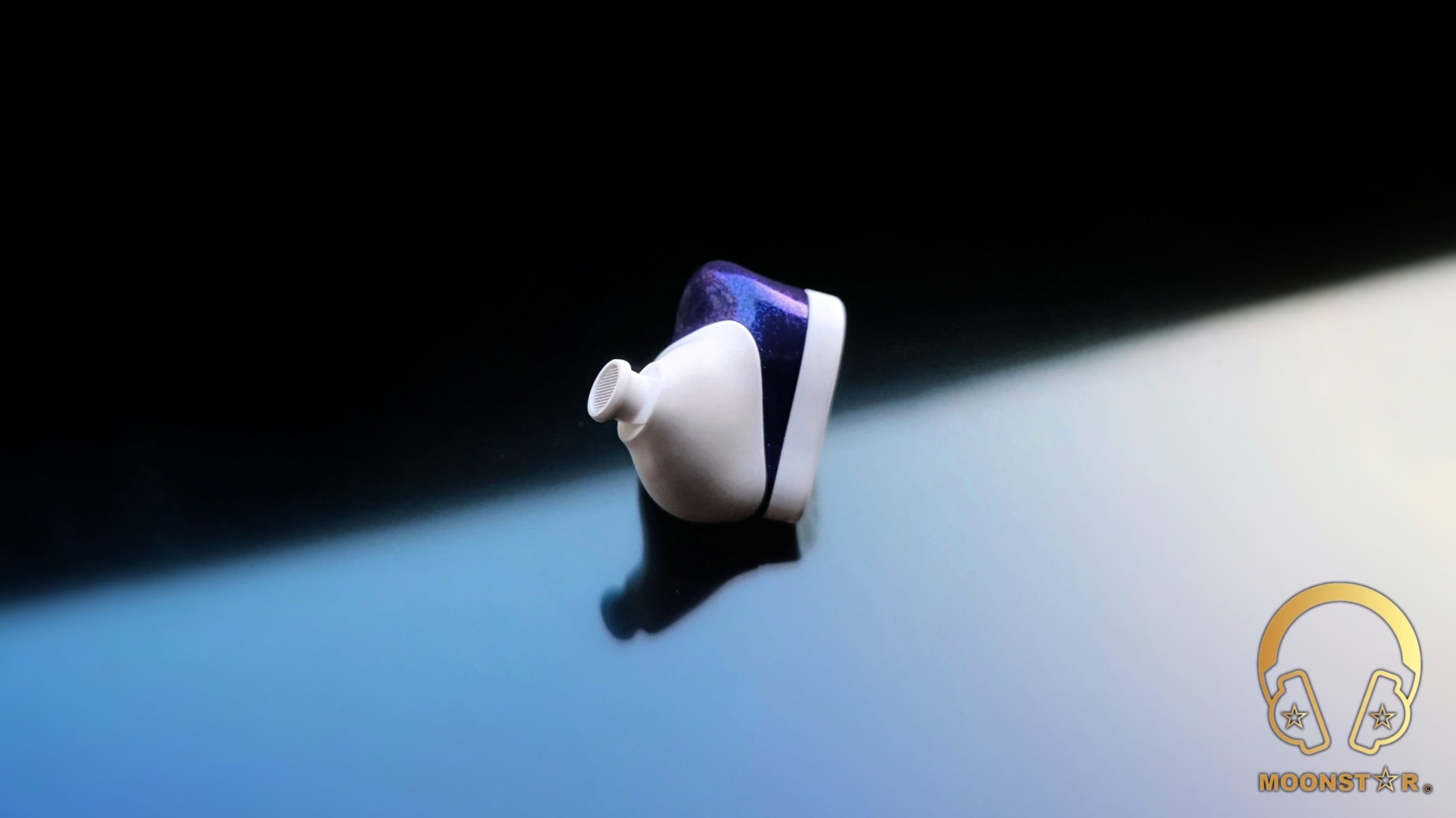 The MOONDROP Robin’s design thoughtfully combines its look with its purpose. Made from medical-grade resin, these earphones are smooth and light, offering both strength and a comfortable feel. Their style centers on a frosted white base, enhanced by a purple, iridescent finish on the purple parts that changes color with the light, creating a dynamic visual. This choice adds to their quality feel and subtly connects to the Honkai: Star Rail theme.