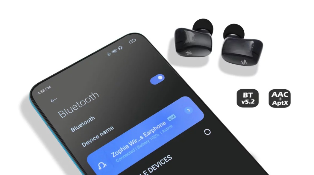 The Zorloo Zophia comes built-in with the latest Bluetooth v5.2 protocol to deliver low latency audio for different usages scenarios, be it media consumption, games, or voice call. It has a built-in microphone. It supports the aptX Bluetooth codec and offers up to 5 hours of playing time plus an additional 20 hours through the charging case.
