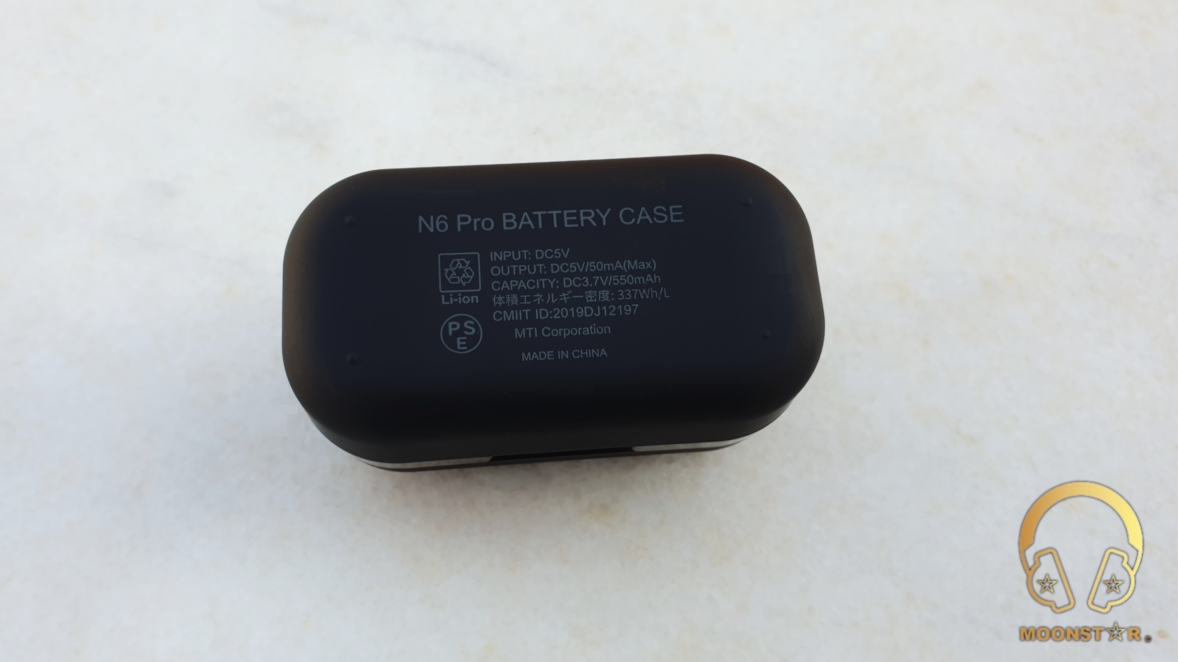 The charging case of the N6 Pro is made of plastic and has a rubbery surface which offers a nice to touch feel when you hold it in your hands. It has dimensions of W72.0 x H37.0x D38.5mm weight approx. 45gr and features a 550 mAh battery that can charge each earpiece up to 4 times.
