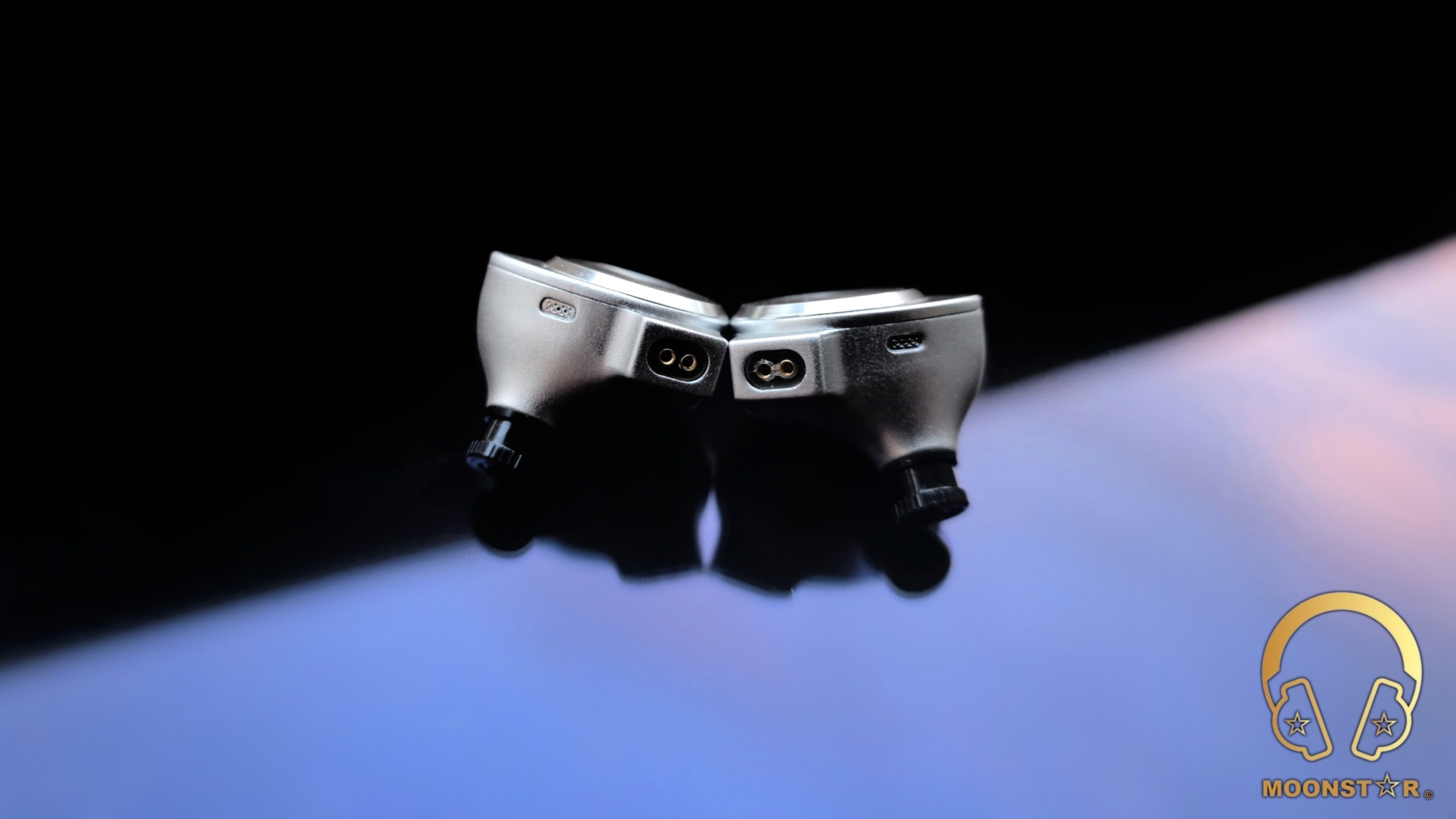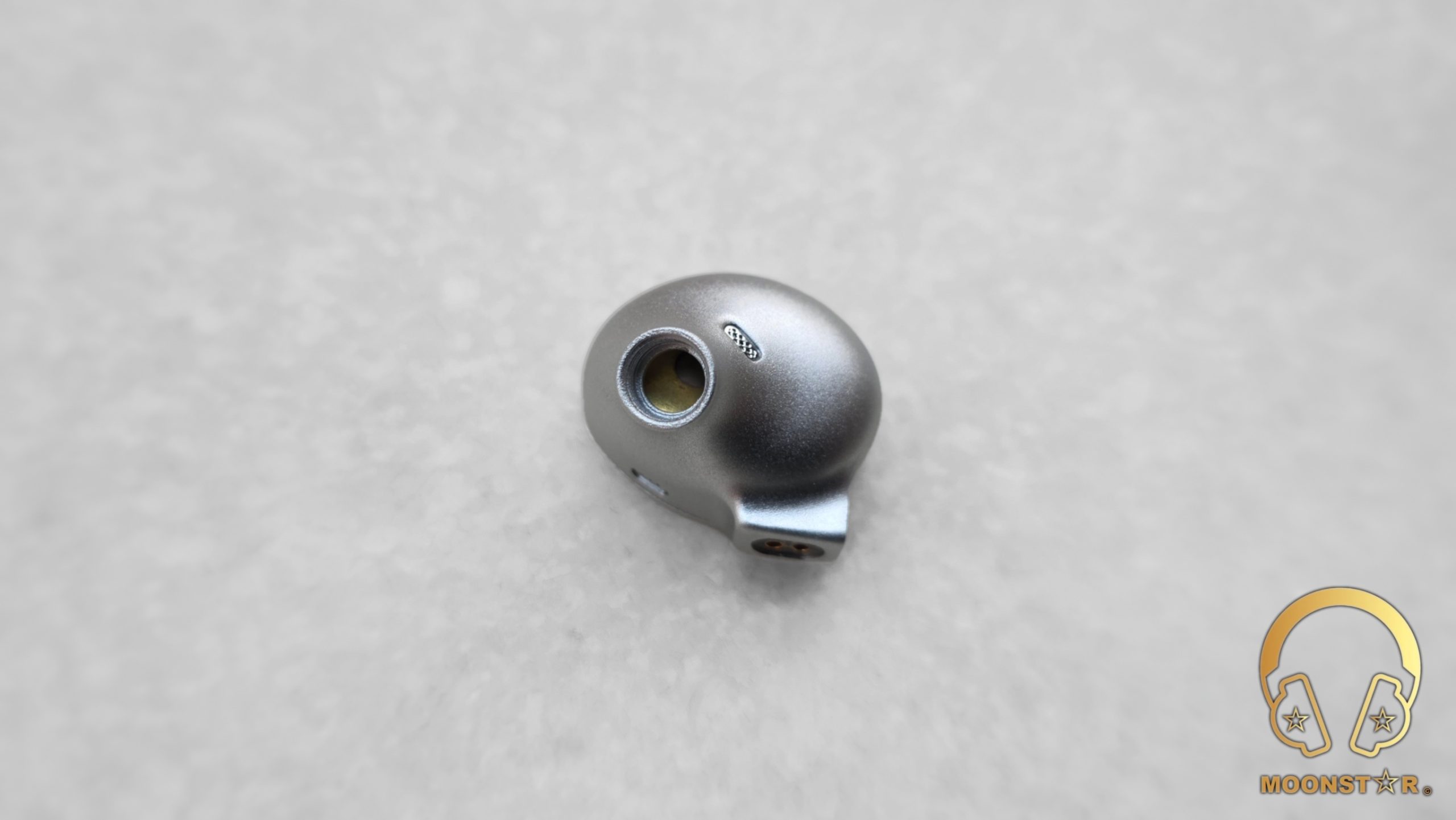 The monitors are equipped with 0.78 mm dia. 2-pin sockets, which are recessed by approx. 0.8 mm. Two small vents are present: one immediately below the nozzle (pressure equalization) and one near the 2-pin area (driver back-volume ventilation).
