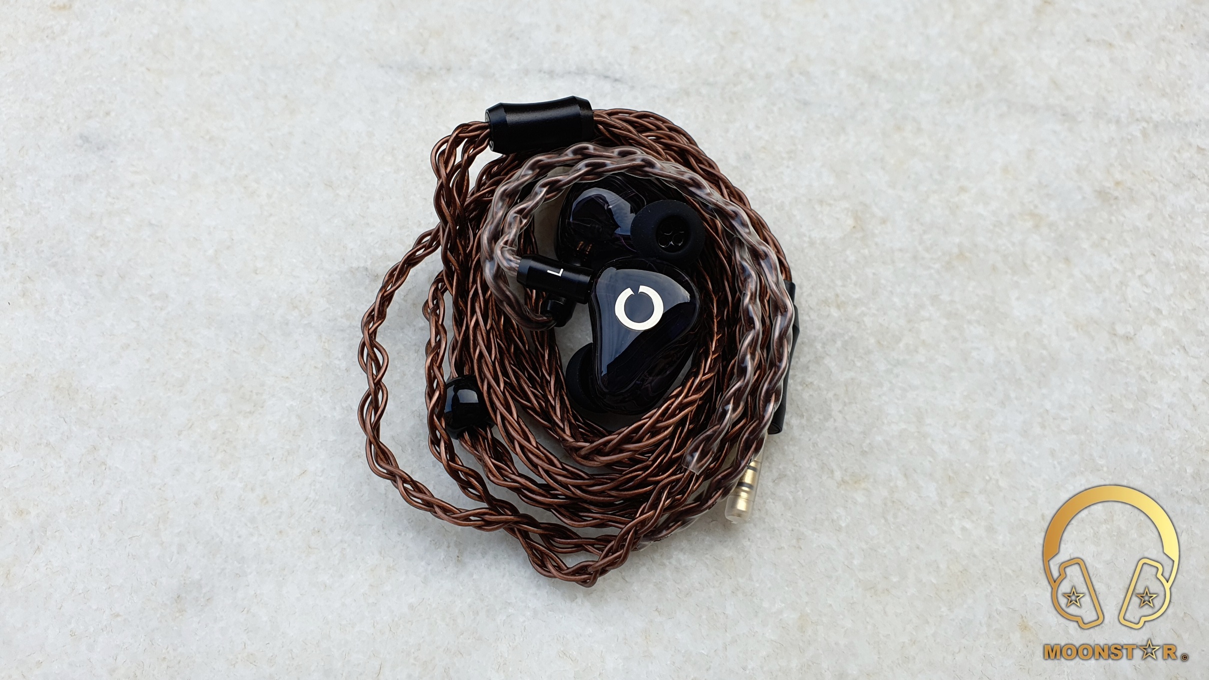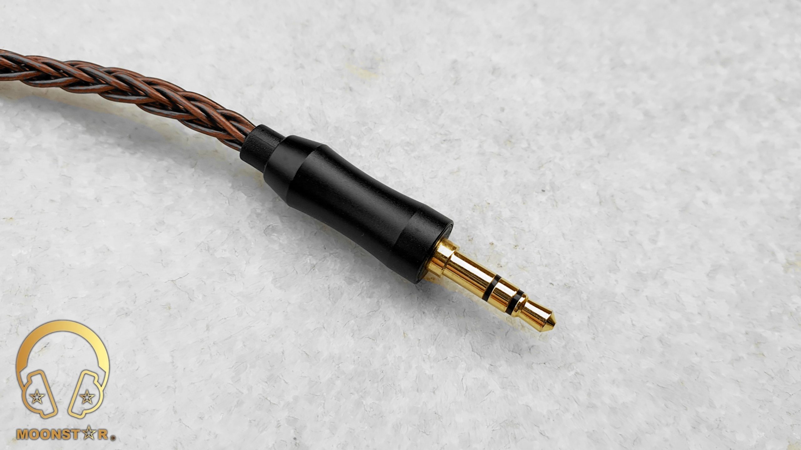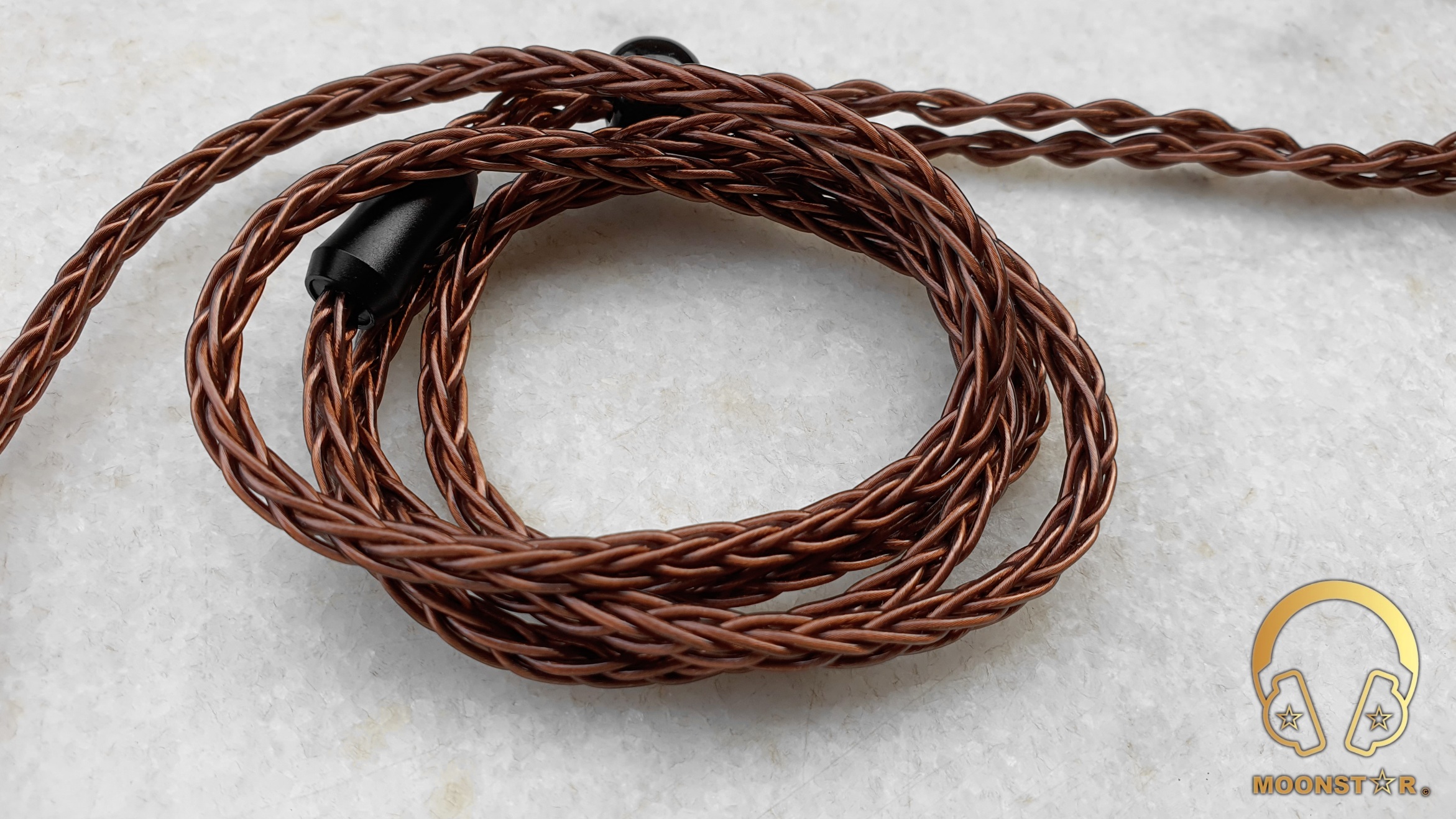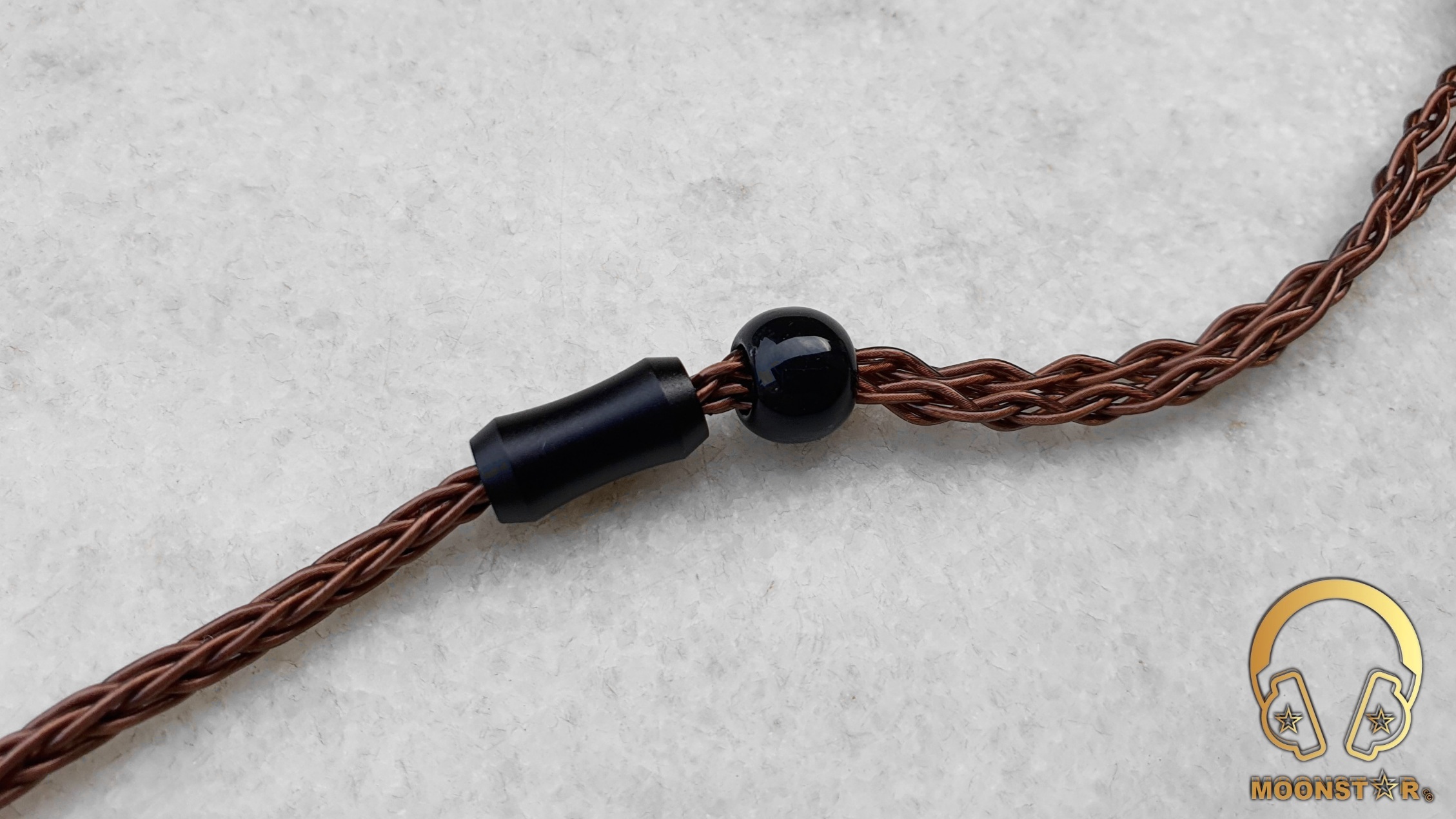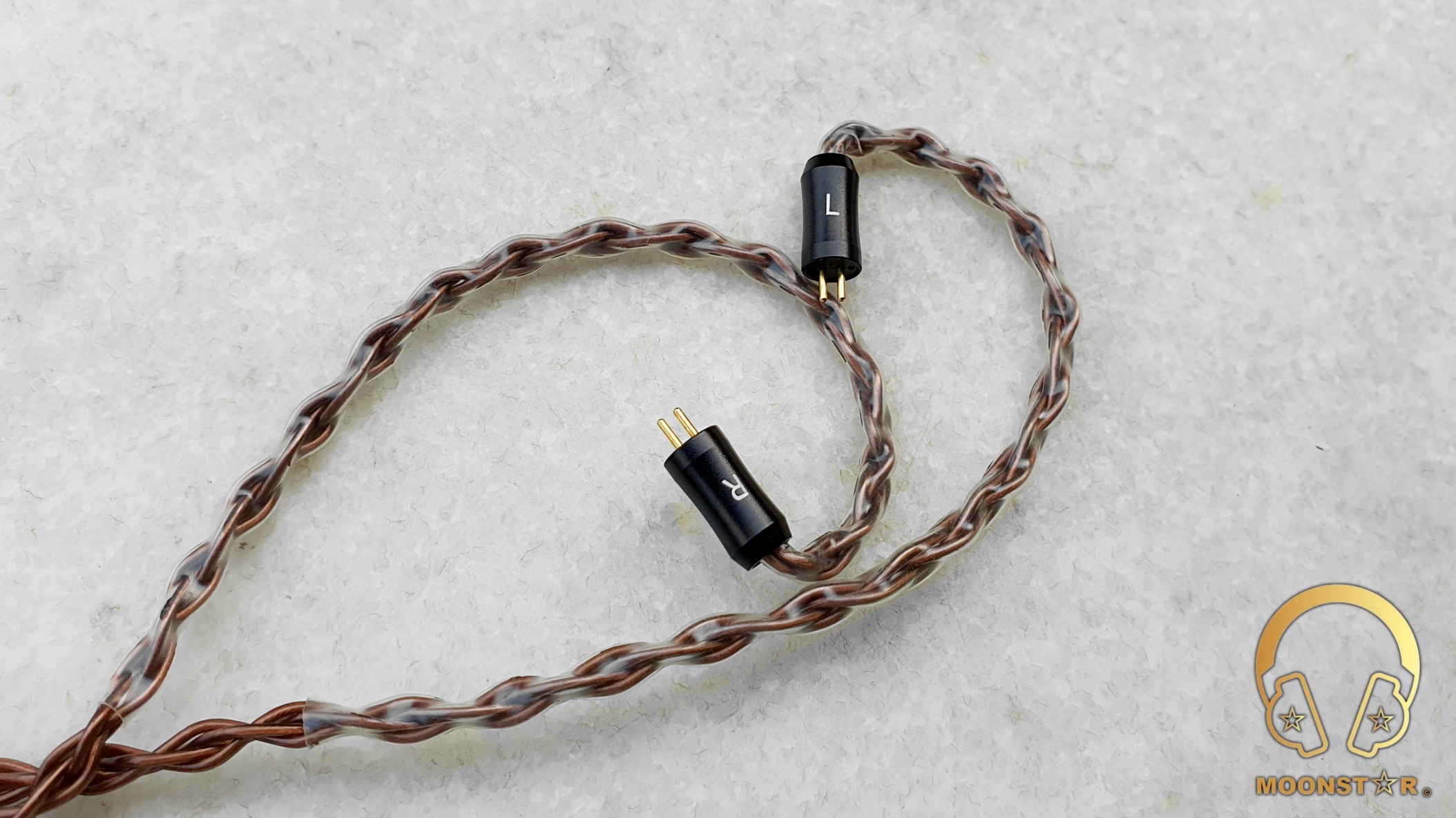 The nicely braided detachable has a brown PVC isolation and features transparent heat-shrink ear guides near de 2-Pin connectors for a more comfortable over ear wearing experience.
