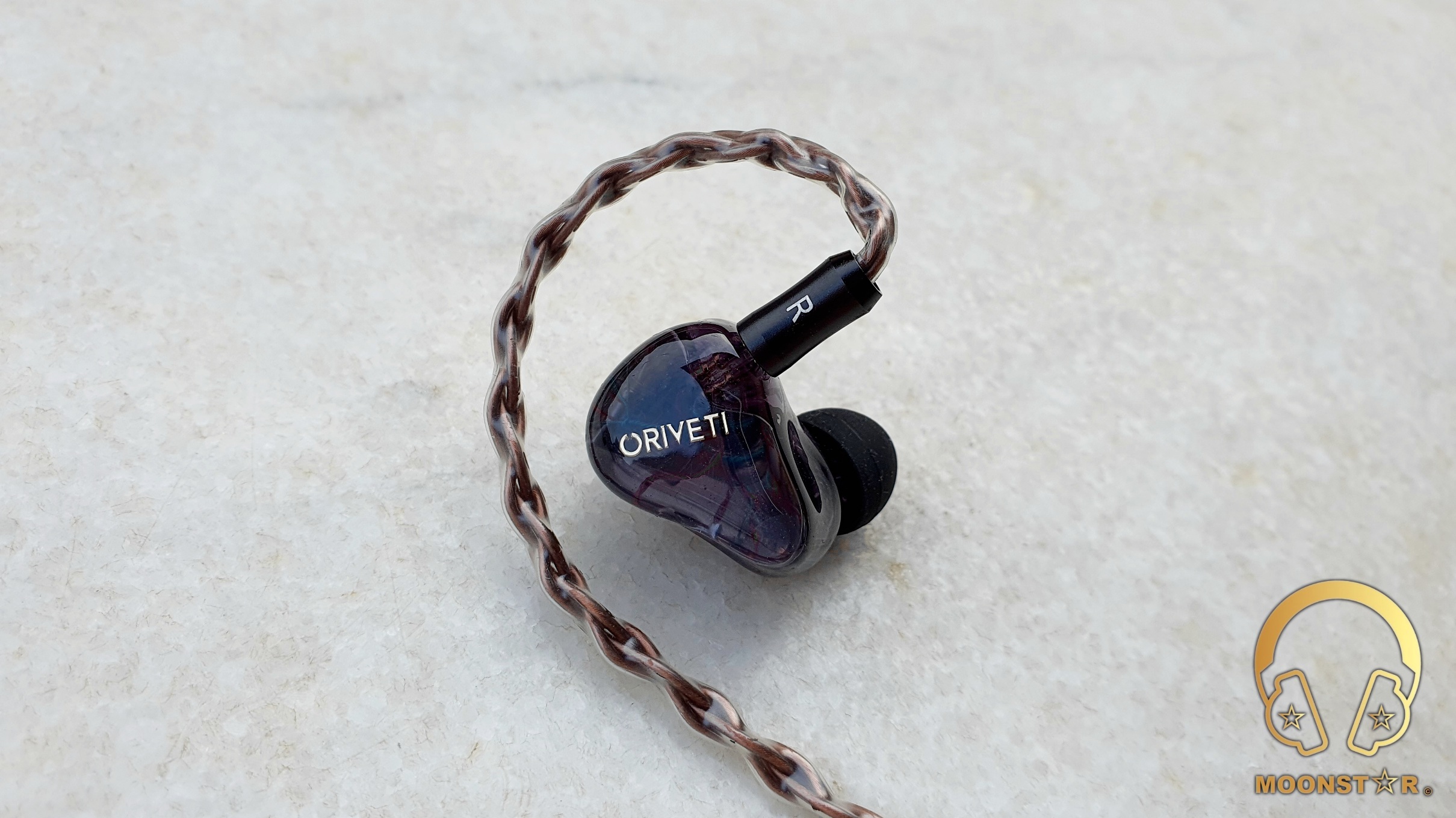 You can see here the Balanced Armature drivers with the Oriveti branding on the top that are visible under the semi transparent resin shell, which is a nice experience.