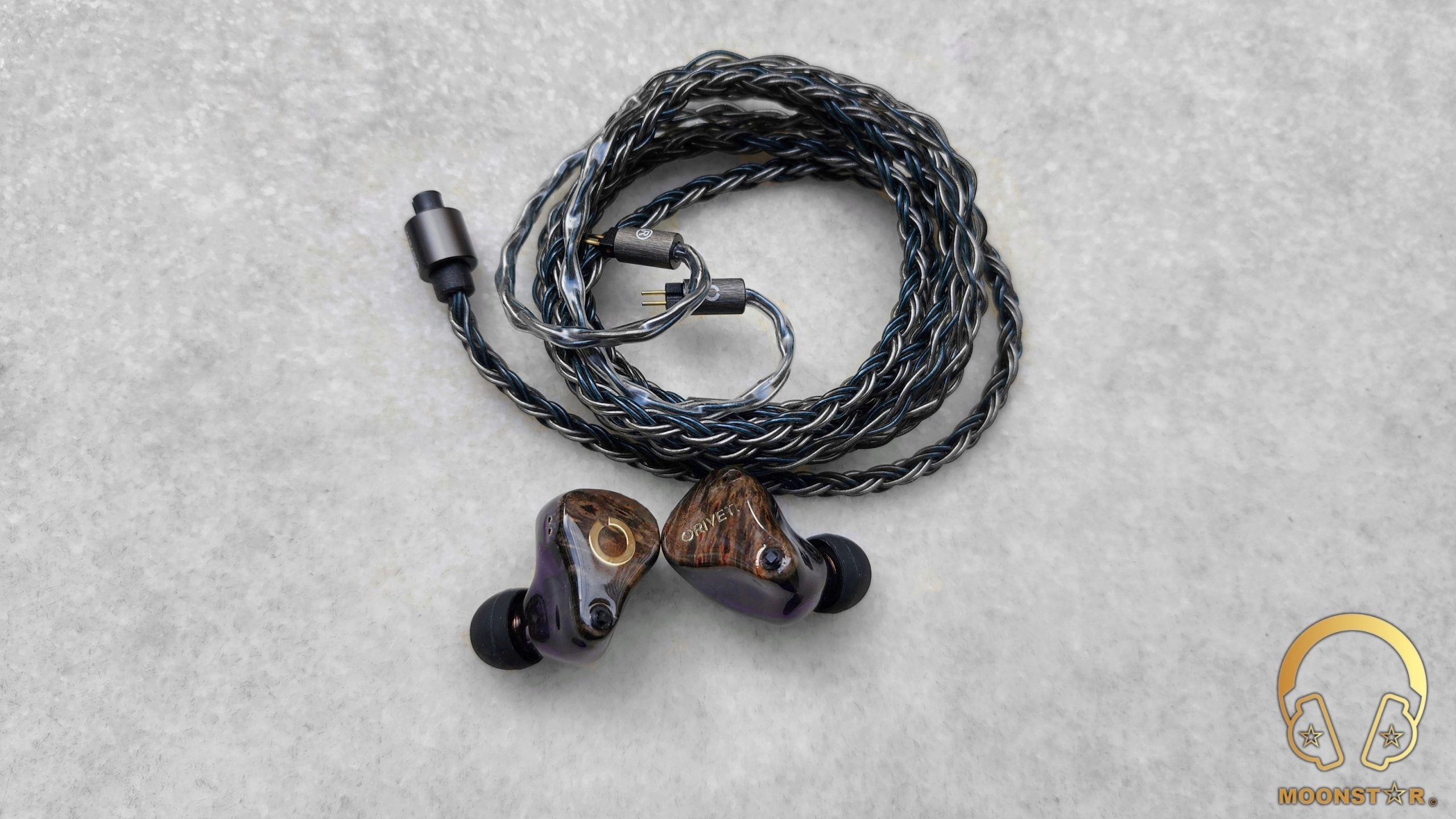 The Oriveti OH700VB is a quite esthetic looking IEM with a pretty compact and ergonomic shape for that shares the same design like previous models like the O400 and O800/OV800. The housing has a hand made semi-transparent resin material in a beautiful purple color, while the main optic highlight is the stabilized wood faceplate with the Circular Oriveti logo on the left and Oriveti branding on the right earpiece.