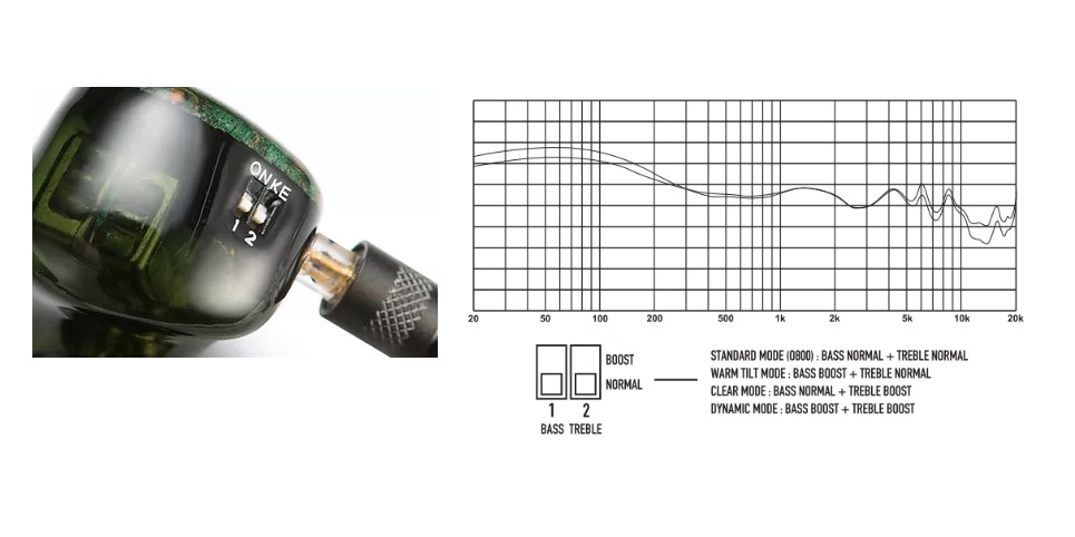 The Clear Mode adds a slightly boost to the upper midrange and treble region with focal point to the lower treble area compared to the Standard Mode (both switches @ off).