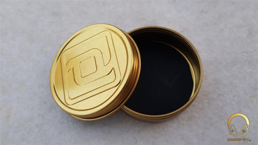 There is a also tin case in golden color which sports the Periodic Audio logo. The inner side of this case has a velvet coating which should protect the Be from any scratches.