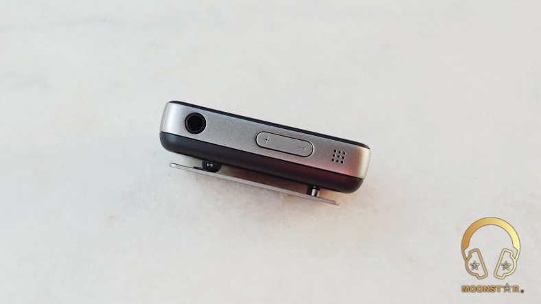At the back side of the device is a metal shirt clip that sports the Radsone brand logo. I have read some negative comments about the clamping force of the shirt clip, but I think that Radsone solved this issue because the shirt clip of my ES100 is quite ok.