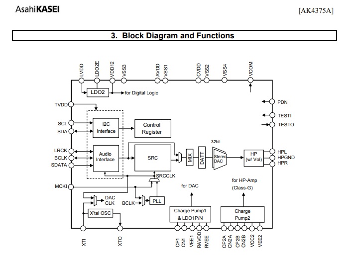 The AK4375A has is a SoC with a build in Amplifer with an output power of 25mW @ 32Ω and 40mW @ 16Ω while the THD+N is 0.1%.