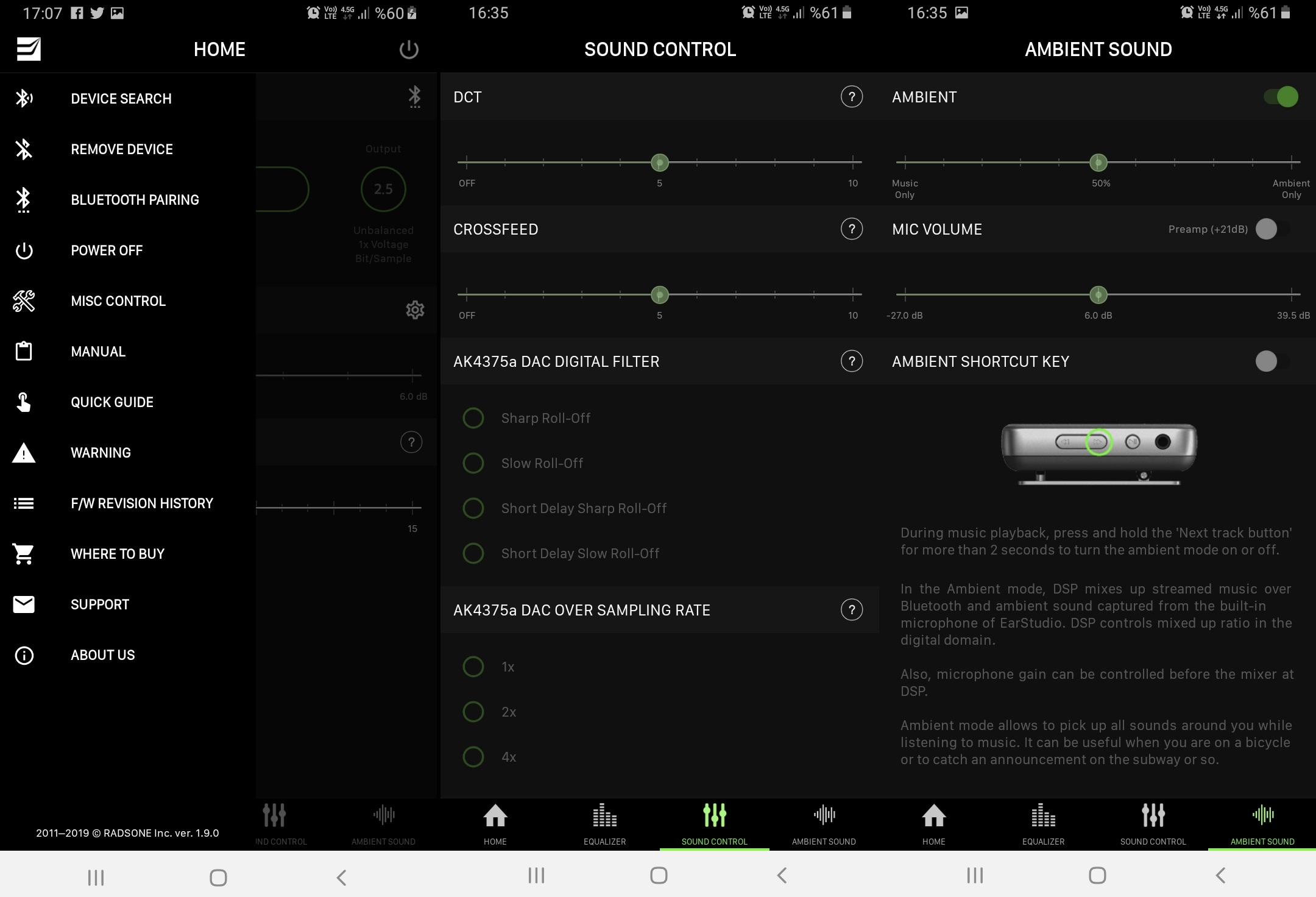 - Devices : Radsone EarStudio ES100, FiiO BTR3, FiiO BTR5, Samsung Galaxy S9+
