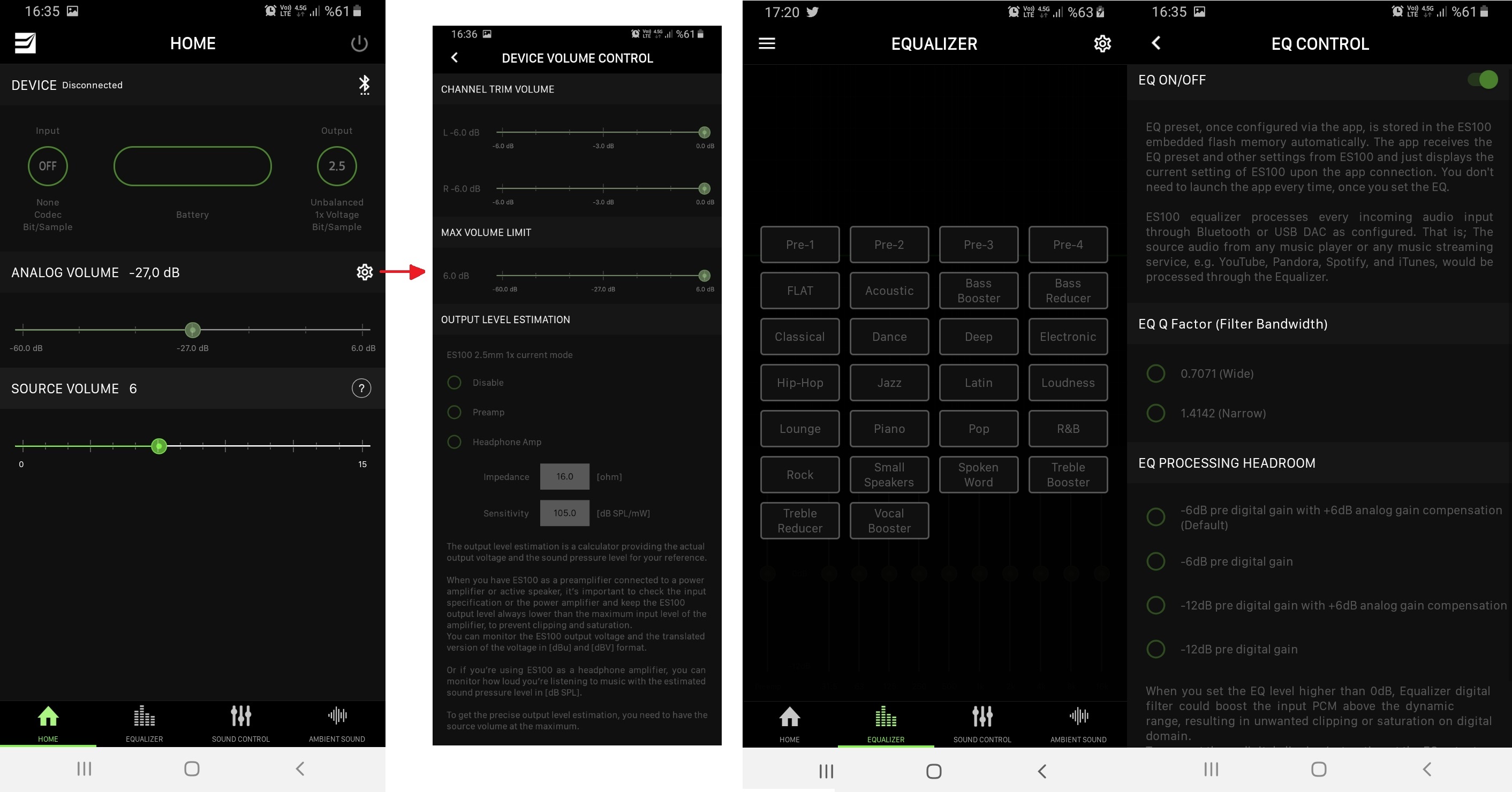The Radsone software team has developed the so called EarStudio Application for the use with Android and iOS devices. This application is a very useful tool to fine tune your ES100 over your phone or tablet. You need to install the latest Firmware (FW) which is the FW Version 2.0.2 to get access to all Software Features.