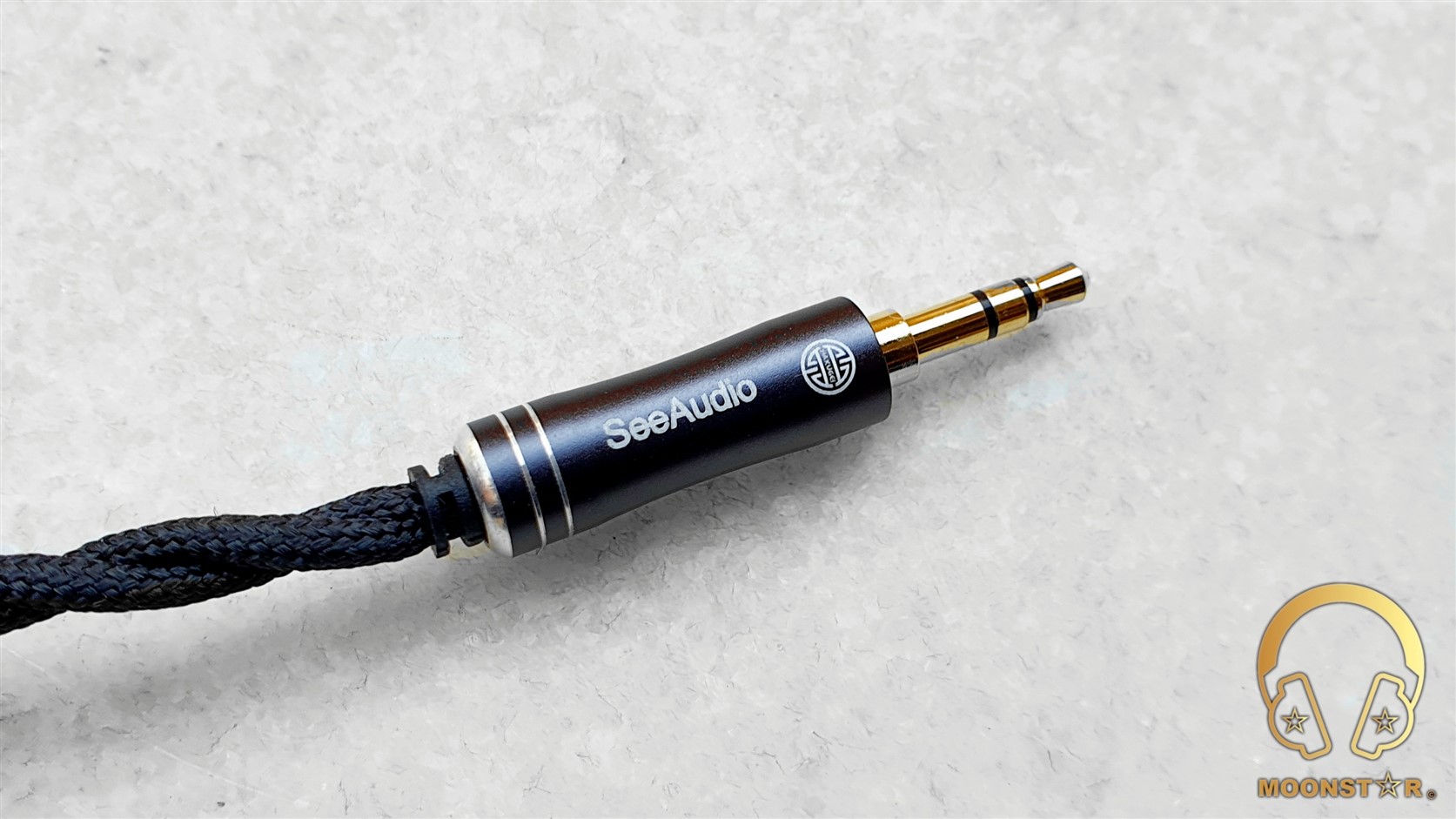 The cable comes with a 3.5mm Single Ended headphone jack that has a straight profiled metal housing in the same grey color like all the metal part of the cable. On the top of the housing are the Hakugei and SeeAudio brand logos. The housing features also a plastic strain relief for extra durability.