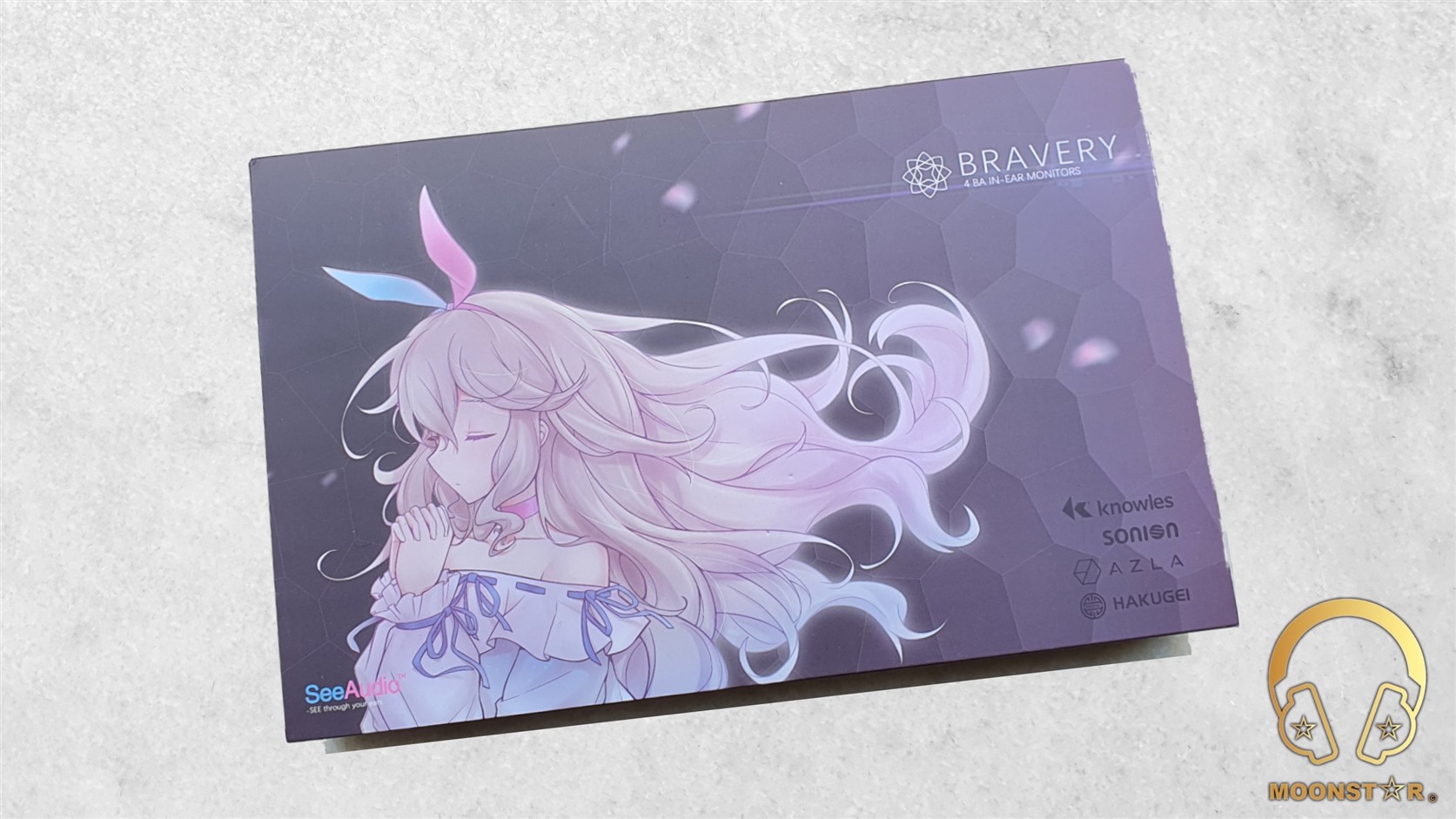 The SeeAudio Bravery came inside a pretty large rectangular box that was wrapped with colorful cardboard that has the Bravery branding and the RINKO Anime character on the top, while some product related specifications and details are printed at the bottom of those box.